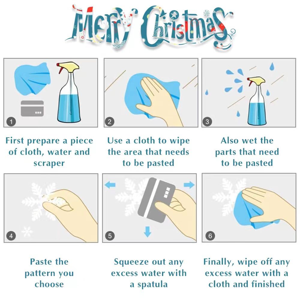 - Christmas Window Stickers are Easy to Stick: Make sure the surface is smooth and free of any textures (such as mirrors and glass) and clean the surface to make sure there is no dust and grease before sticking the Christmas stickers.Spray a little water on the surface, the water will make them stick better. Then you can enjoy your snowflake window stickers, pretty and festive.