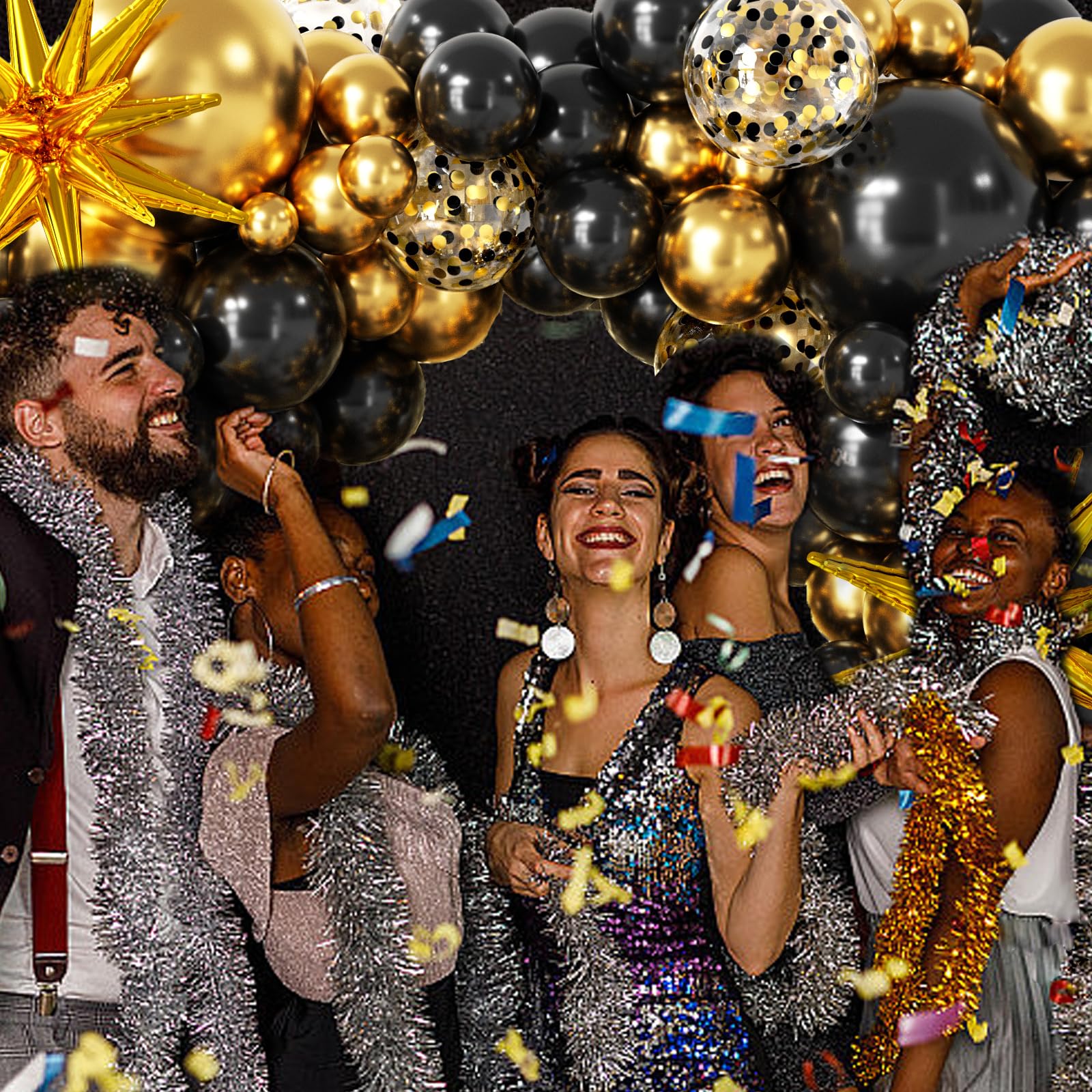 - PERFECT PARTY DECORATIONS: Black gold confetti latex balloons garland arch kit suitable for graduation decorations class of 2024, birthday, retirement, gold black themed party, anniversaries, prom, Father's Day, Christmas, bachelor party, company events, photo shoots and any themed party inside or outside, which makes your party more special.