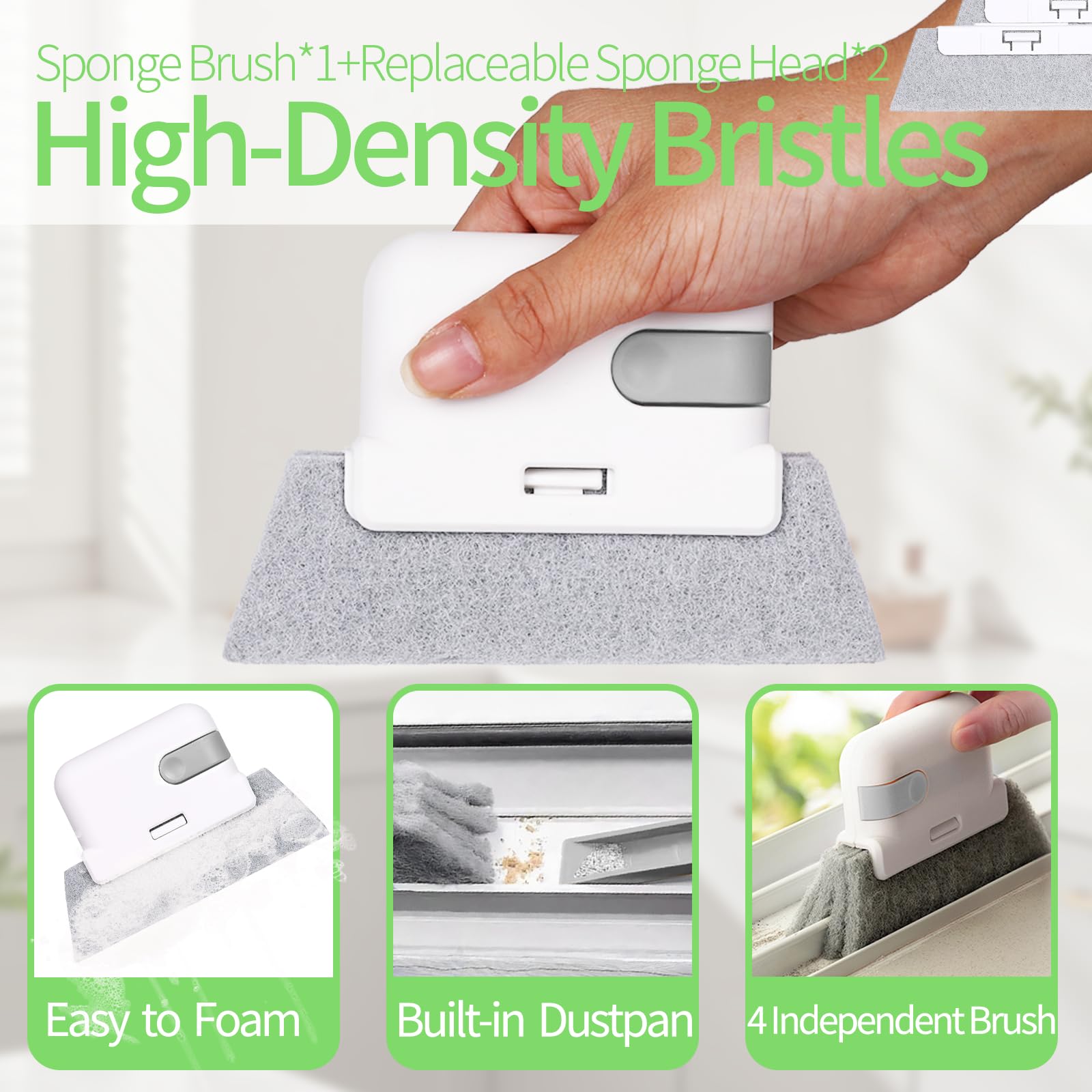 Details: 13-Piece Total Home Rescue Kit: Conquer Every Crevice, No Dust Left Behind! Includes 2 Crevice Brushes for tight spots, 3 Metal brushes for heavy-duty scrubbing, 2 Magic Sill cleaner tool (with 2 replaceable sponges), 2-in-1 Window/Door Track Cleaners, Swan-Neck Rail Brush, and a Shovel. Your ultimate weapon against neglected nooks in kitchens, offices, restaurant and beyond!