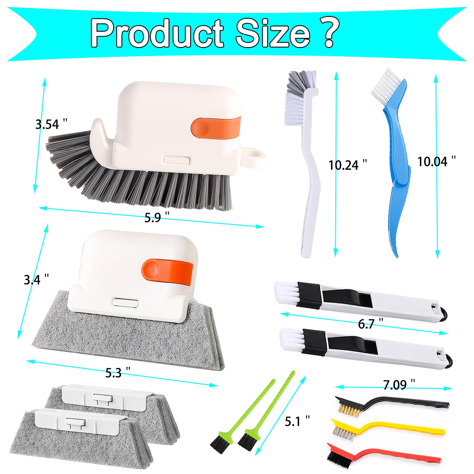 - Ultimate Cleaning Powerhouse: The 13-Piece Window Groove Cleaning Brush Kit—Quality Meets Quantity. This all-in-one cleaning brush set boasts a versatile dual-function Groove Cleaning Brush, two magical window sill brushes with replaceable sponges, two 2-in-1 door and window slot cleaning brushes, compact appliance brushes for household use, a foldable groove brush, three gap cleaning brushes featuring steel, copper, and nylon, and a multifunctional brush for coffee machines and cups. Ready to tackle all your cleaning needs, this comprehensive kit eliminates stubborn dirt with professional-level efficiency.