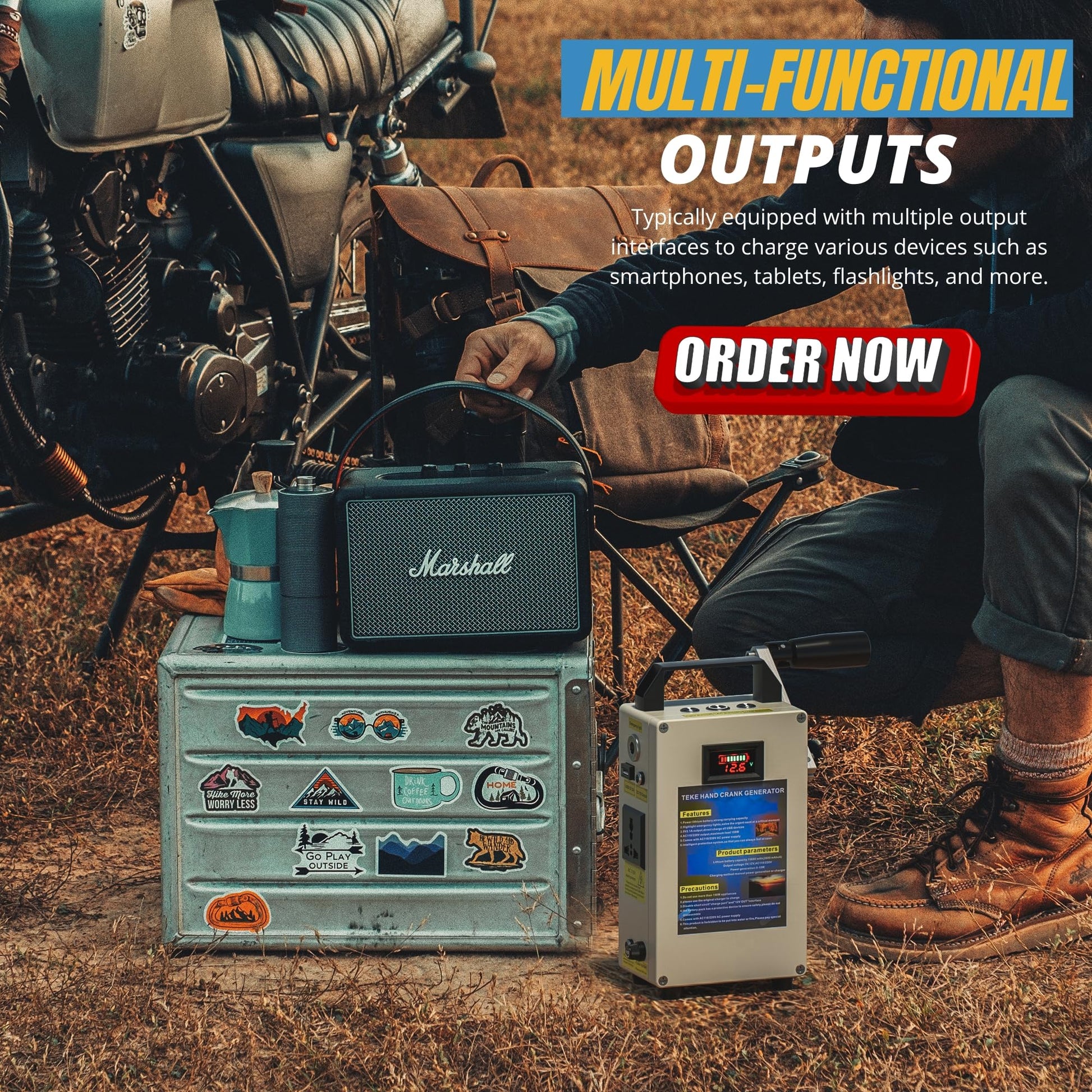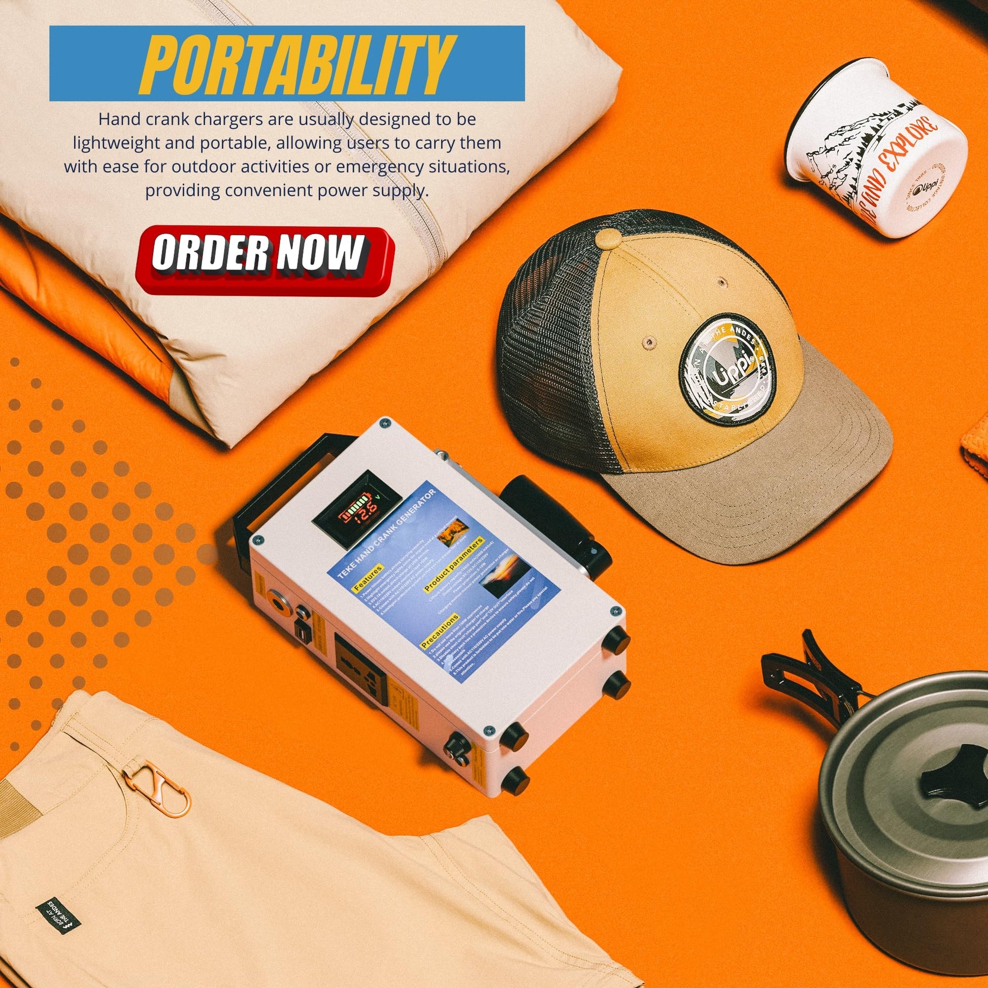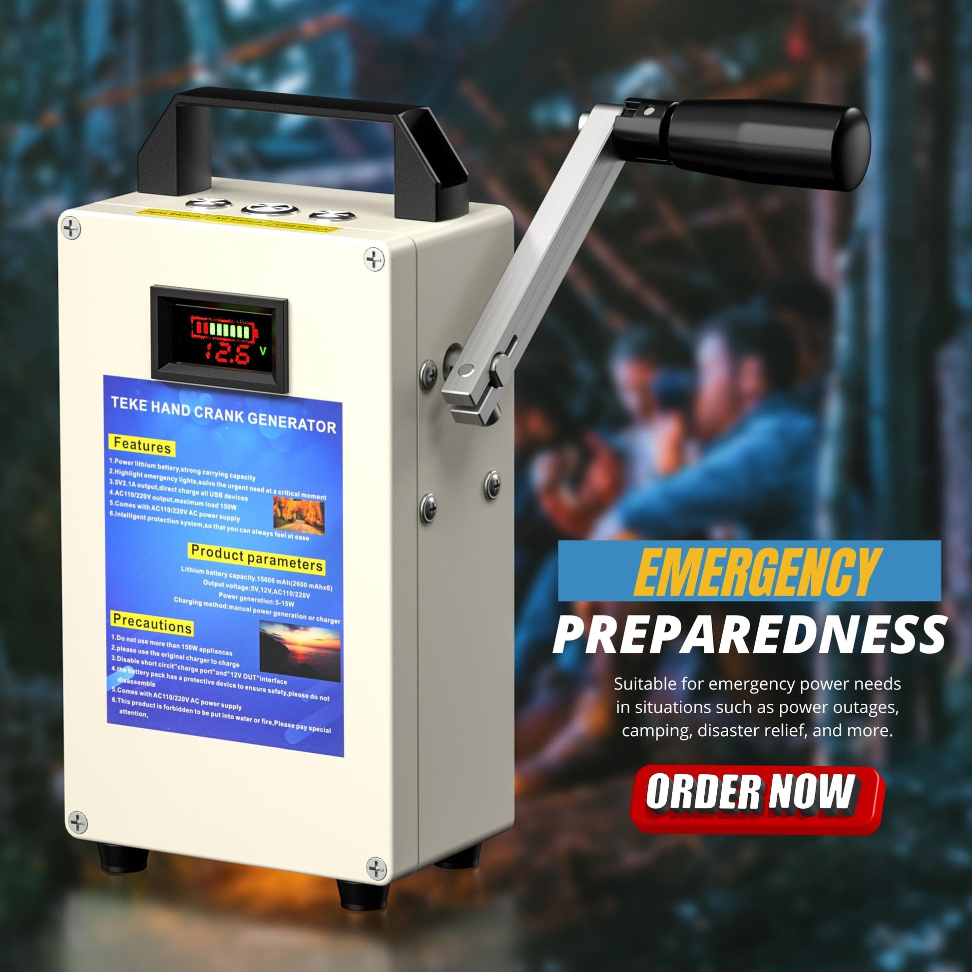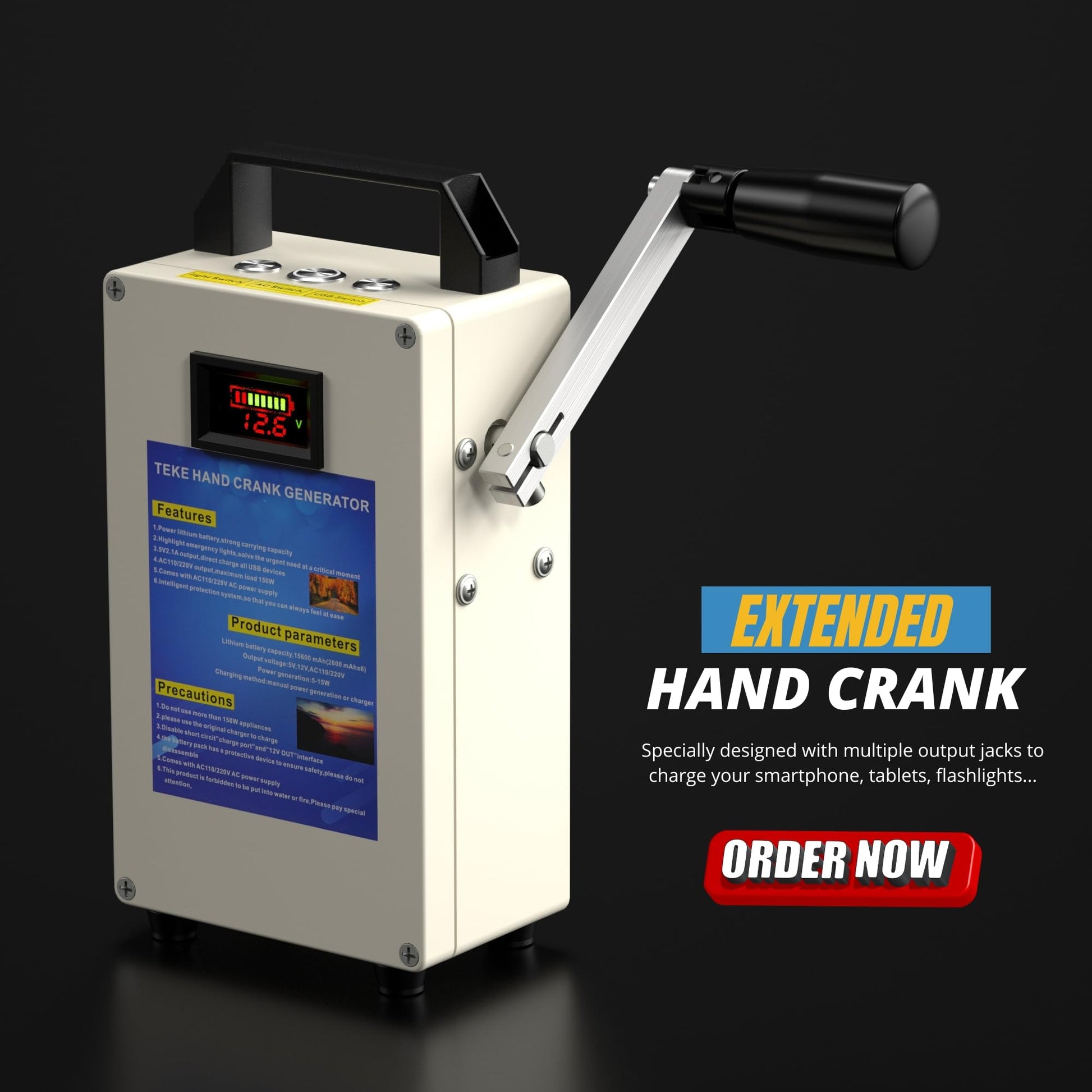 - Hand crank generator designed with 5V/2.1A USB output can hand crank to directly charge all USB devices