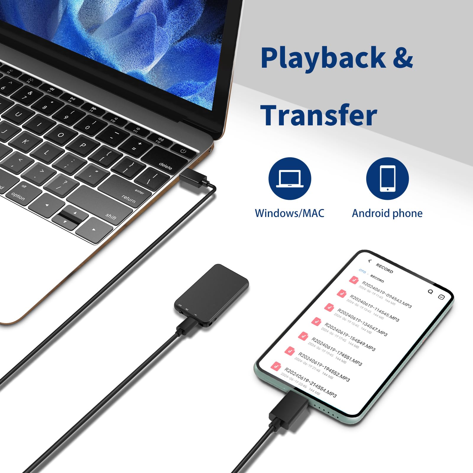 - 64GB Massive Memory: Equipped with a generous 64GB internal memory, our digital voice recorder can store up to 912 hours of recording files at a 160kbps bitrate. The USB-C interface facilitates seamless file transfers to both Mac and Windows systems, ensuring you'll never run short of space