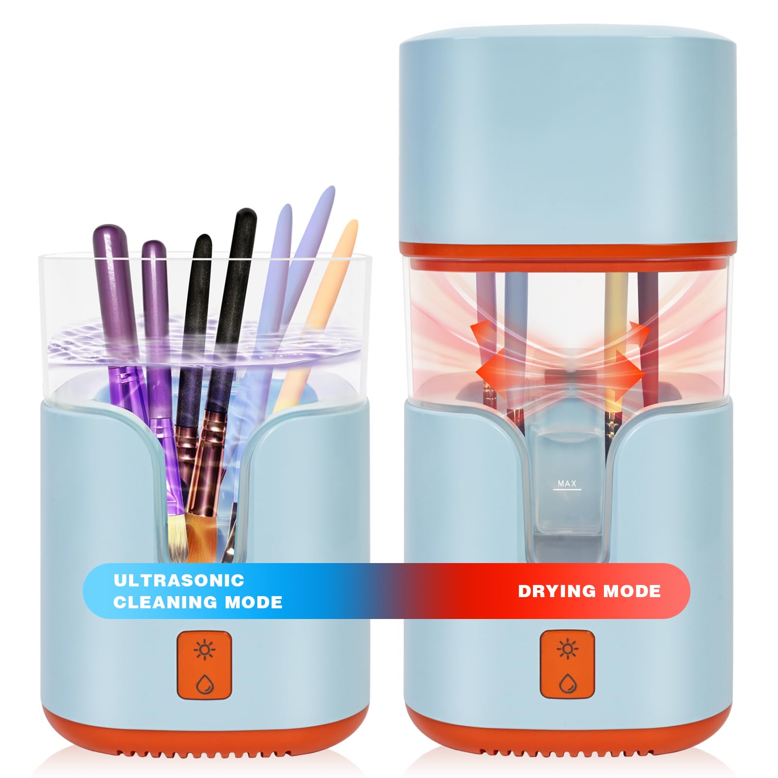 2 In 1 Electric Makeup Brush Cleaner Ultrasonic Cleaner Machine With 95โ Hot Air Cycle Dryer - Ultra Fast Effective Make Up Brush Washer (Blue)