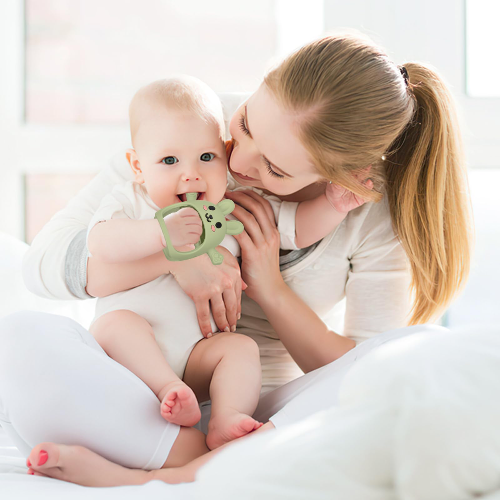 - Soft Silicone Baby Teether: Our baby teether is made of soft silicone with no small parts, ensuring the safety of your teething baby while providing a strong and soft chewing experience. The baby teether toys have passed the strictest ASTM F963-23 test, babies can play with them without fear