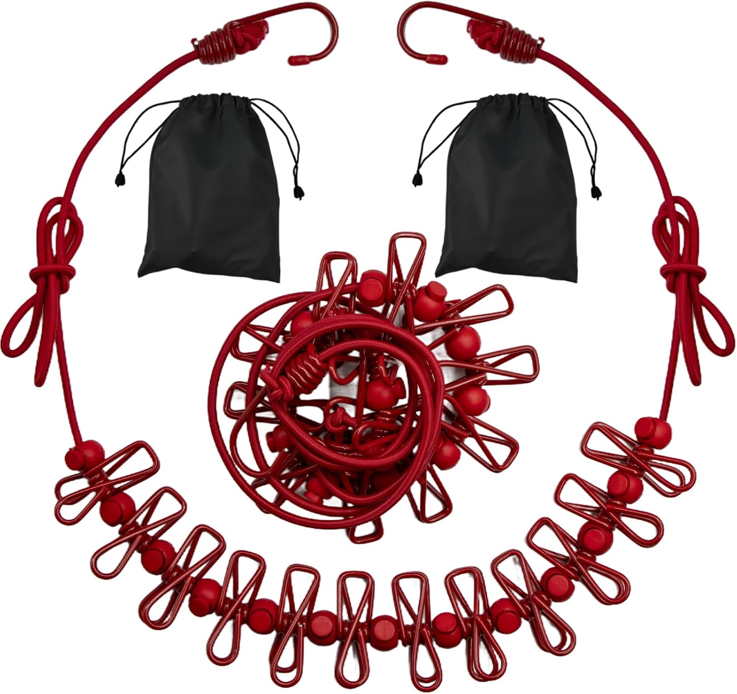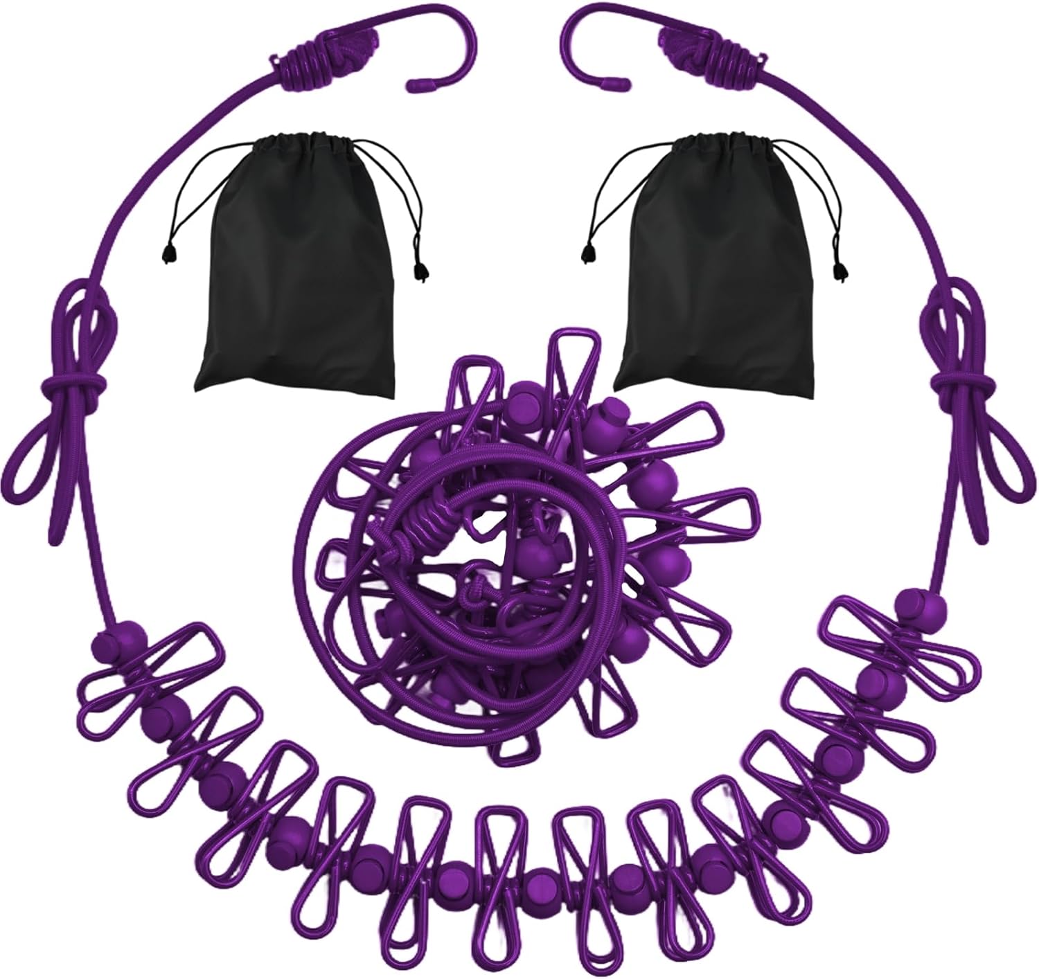 2 Pack Camping Clothesline Portable 12 Clothespins, Black Camping Accessories Travel Clothesline for Outdoor Indoor, Retractable Clothes Line Elastic Clothesline for Camper Hotel Room