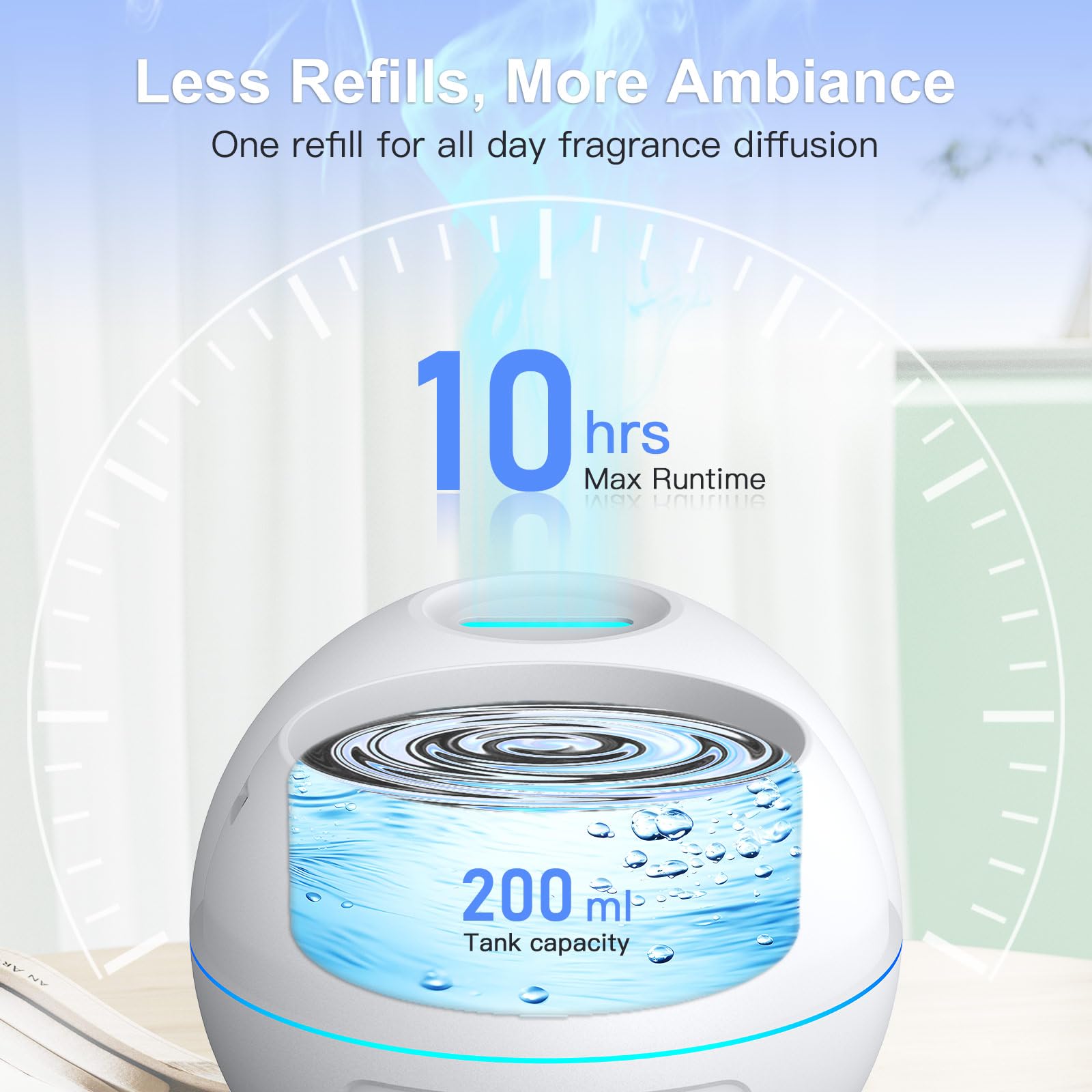 200ml Oil Diffuser for 10H Continuous Fragrance: Designed to fit neatly on any desk without taking up too much space. Fill it once for up to 10 hours of enduring aroma, making it suitable for long wor
