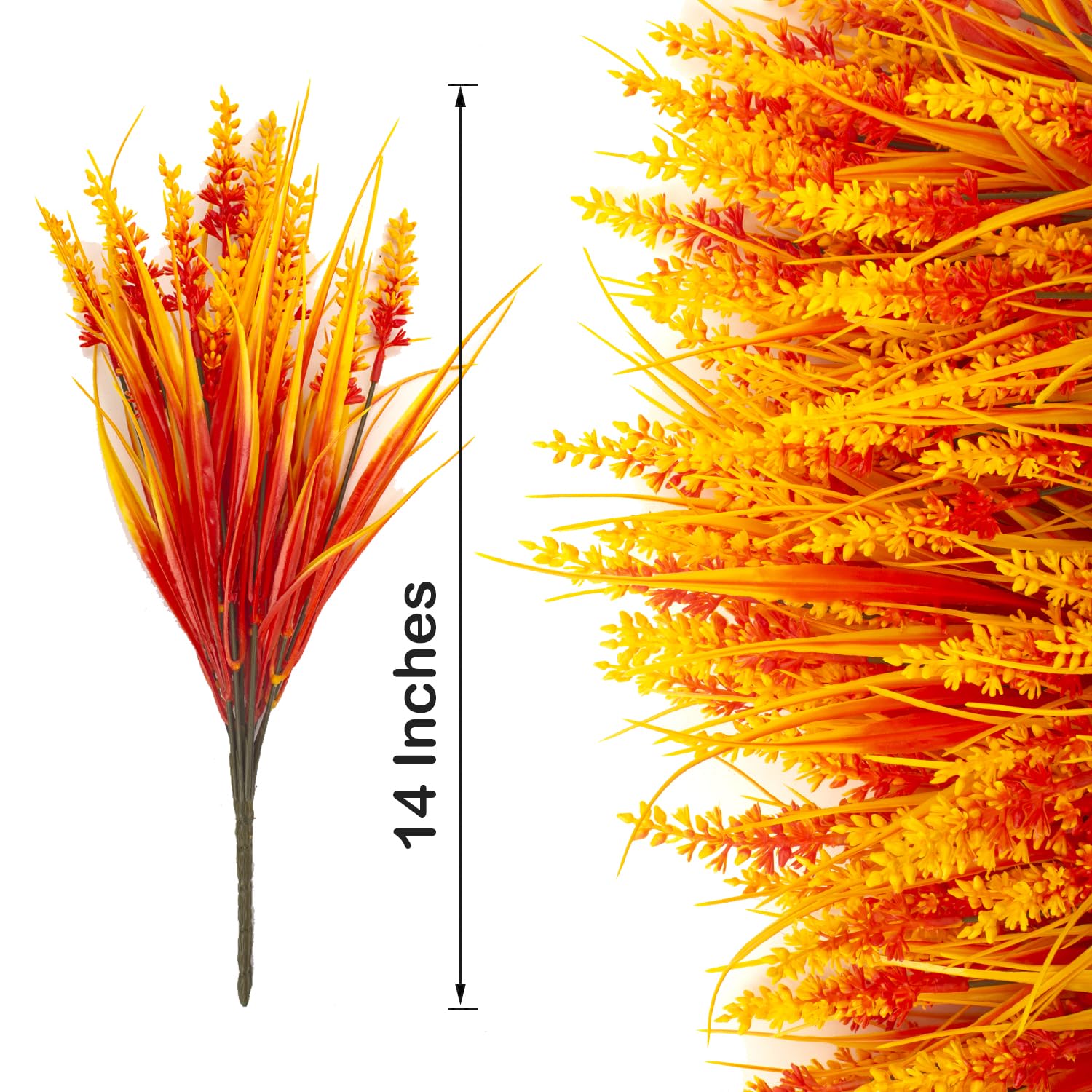20 Bundles Artificial Plants Outdoor Fake Monkey Grass with Flowers (Fall Orange)