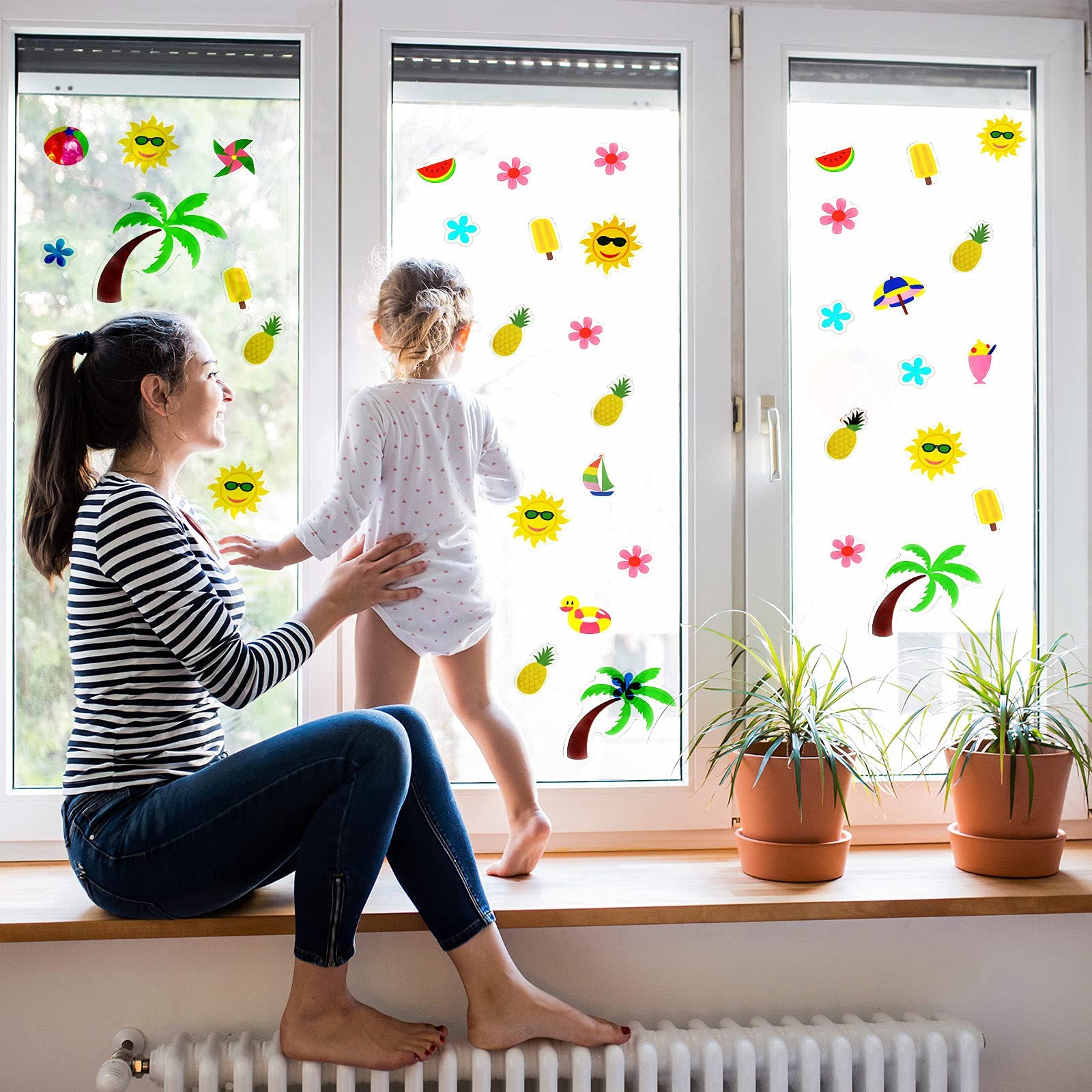 - What will you get: you'll get 20 gel clings with 20 different summer beach patterns which offer a vivid design for your home window decor, your child's imagination can be expanded with these cute and pretty hawaiian window clings