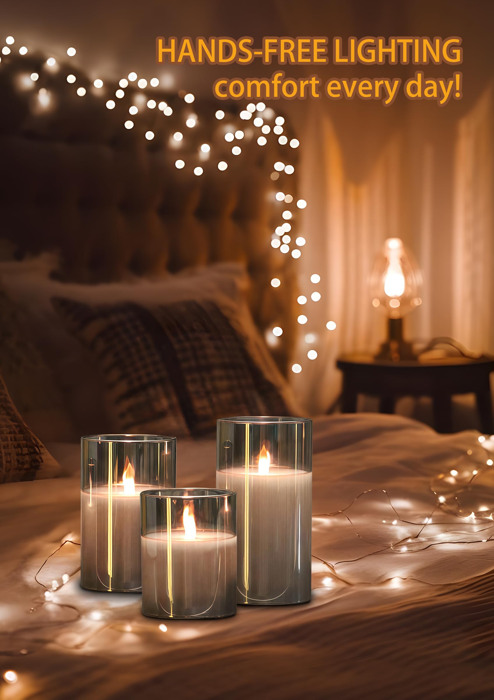 - 【SAFETY MEETS STYLE】Create a cozy, worry-free atmosphere with no open flames or melting wax. These flameless candles are crafted from durable gray glass and filled with real wax, offering a realistic flicker that mimics traditional candles. Perfect for families with children or pets, these candles combine elegance with safety, ideal for any home. We recommend keeping them away from direct sunlight, heaters, or enclosed hot environments to maintain their shape and longevity.