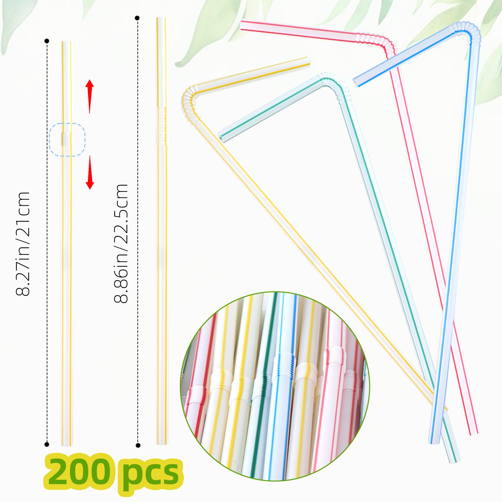 【Ideal Size】 Measuring a substantial 8.27 inches in length,our striped straws are designed to fit a wide range of containers.When extended,these plastic straws can reach around 8.86 inches,offering extra flexibility.These long straws are not only practical for reaching the bottom of deep containers but also great for those who prefer to drink from a distance.