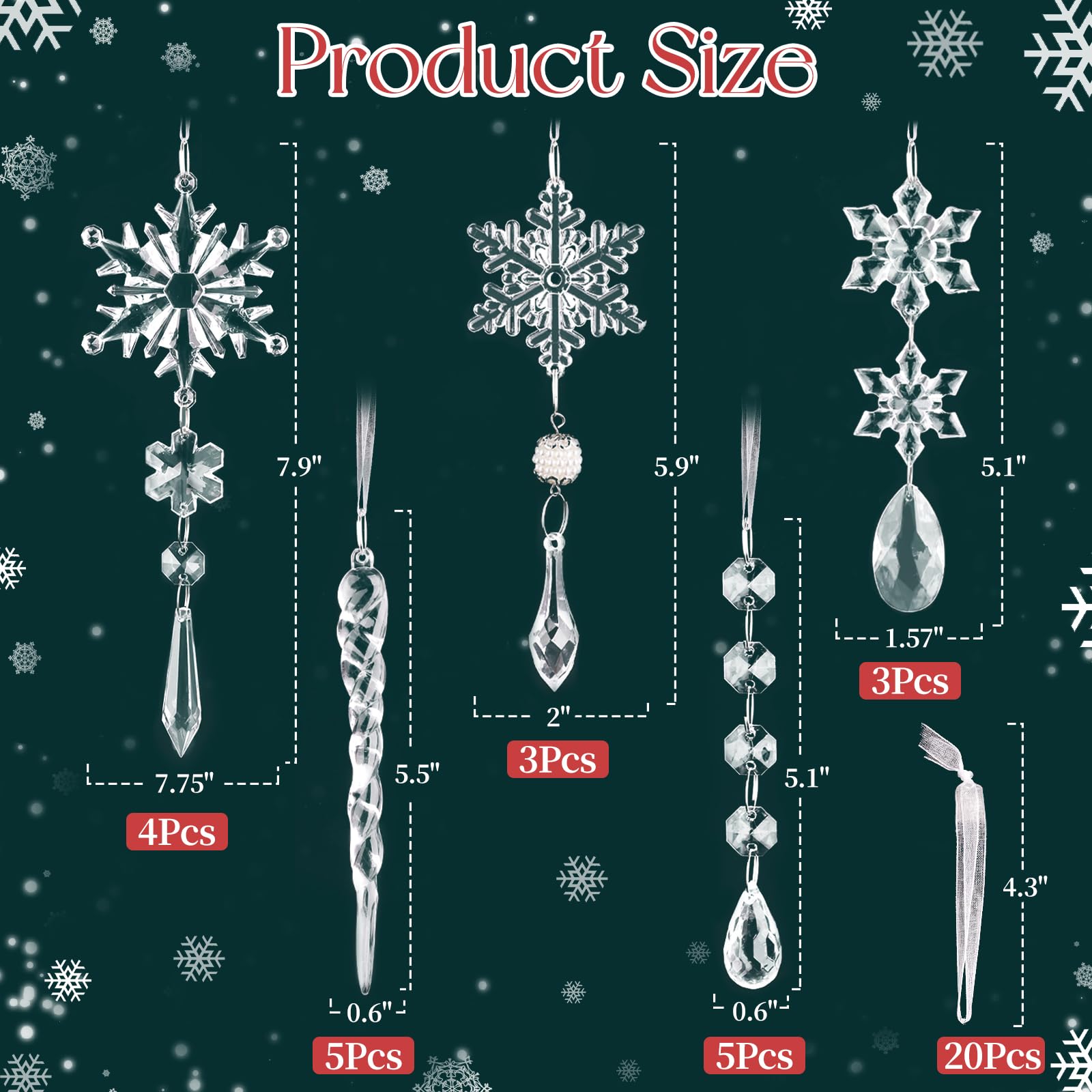 - Valuable Christmas Ornaments: You will receive a super valuable set of 20 pieces Christmas decorations tree ornaments set in 5 styles wrapped in PVC box, including 4pcs large snowflakes, 3pcs middle snowflakes, 3pcs small snowflake, 5pcs icicles and 5pcs crystal beads garlands ornaments. Sufficient quantity can meet your Christmas needs.