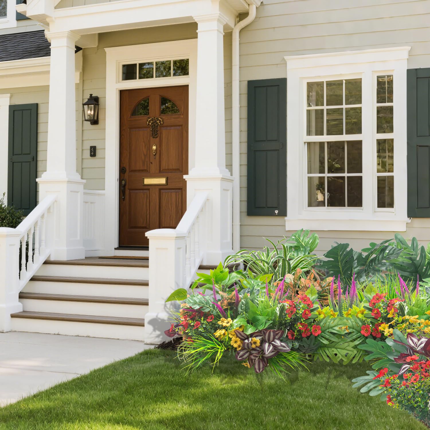 20PCS Fake Flowers UV Resistant Artificial Plants & Faux Shrubs - Outdoor Plastic Greenery Stems for Garden Porch, Window Box Planter, Home Decor(Pot Not Included)