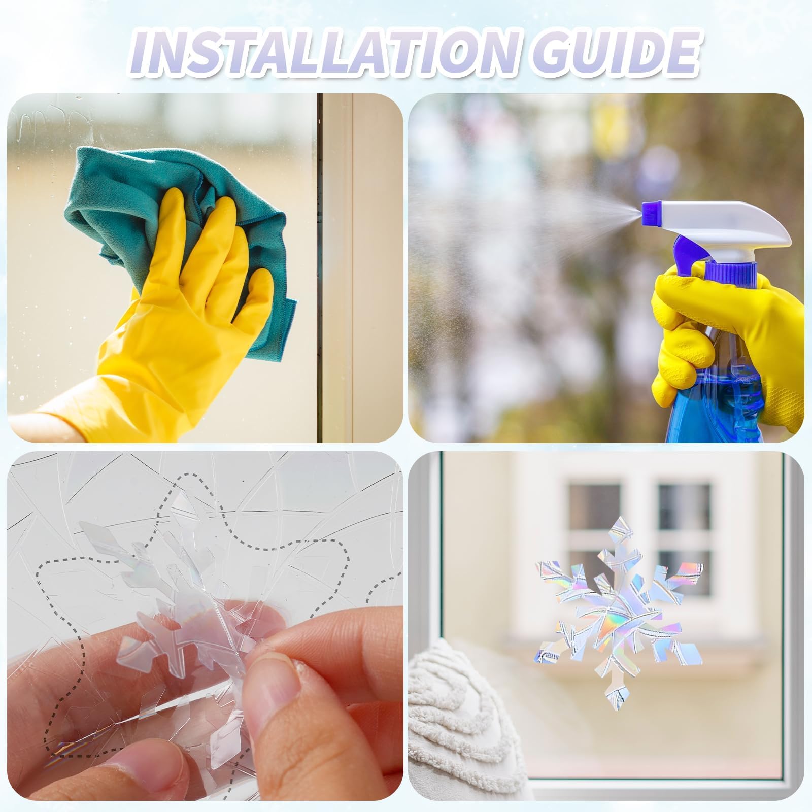 - Iridescent Snowflake Design: With 102pcs snowflake window clings in various patterns and sizes, and 114pcs dot window clings, our window clings Christmas decorations feature an eye-catching laser effect that transforms any window into a winter wonderland with vivid, colorful reflections. Perfect for your creative Christmas winter decorations