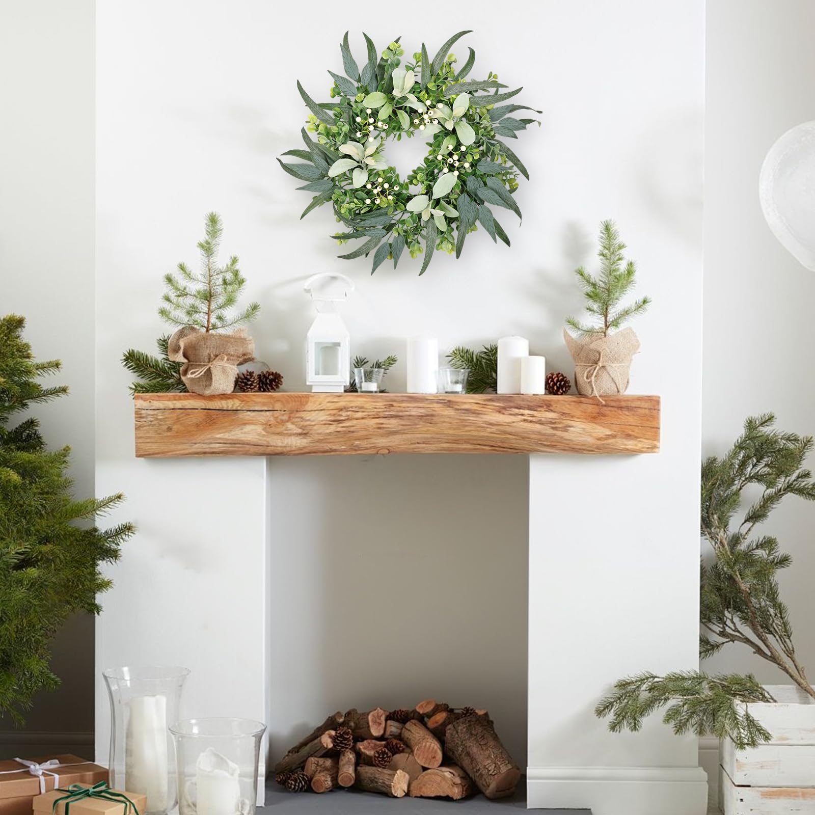 - Versatile Decoration: This elegant eucalyptus outdoor wreath is perfect for all seasons decoration,including spring, summer,Valentine's Day,and holiday celebrations.Whether on the front,door,outdoor,indoor,wall,window, fireplace, or porch, it effortlessly enhances any space.Ideal for home living rooms,kitchens,or farmhouses,it creates a welcoming atmosphere