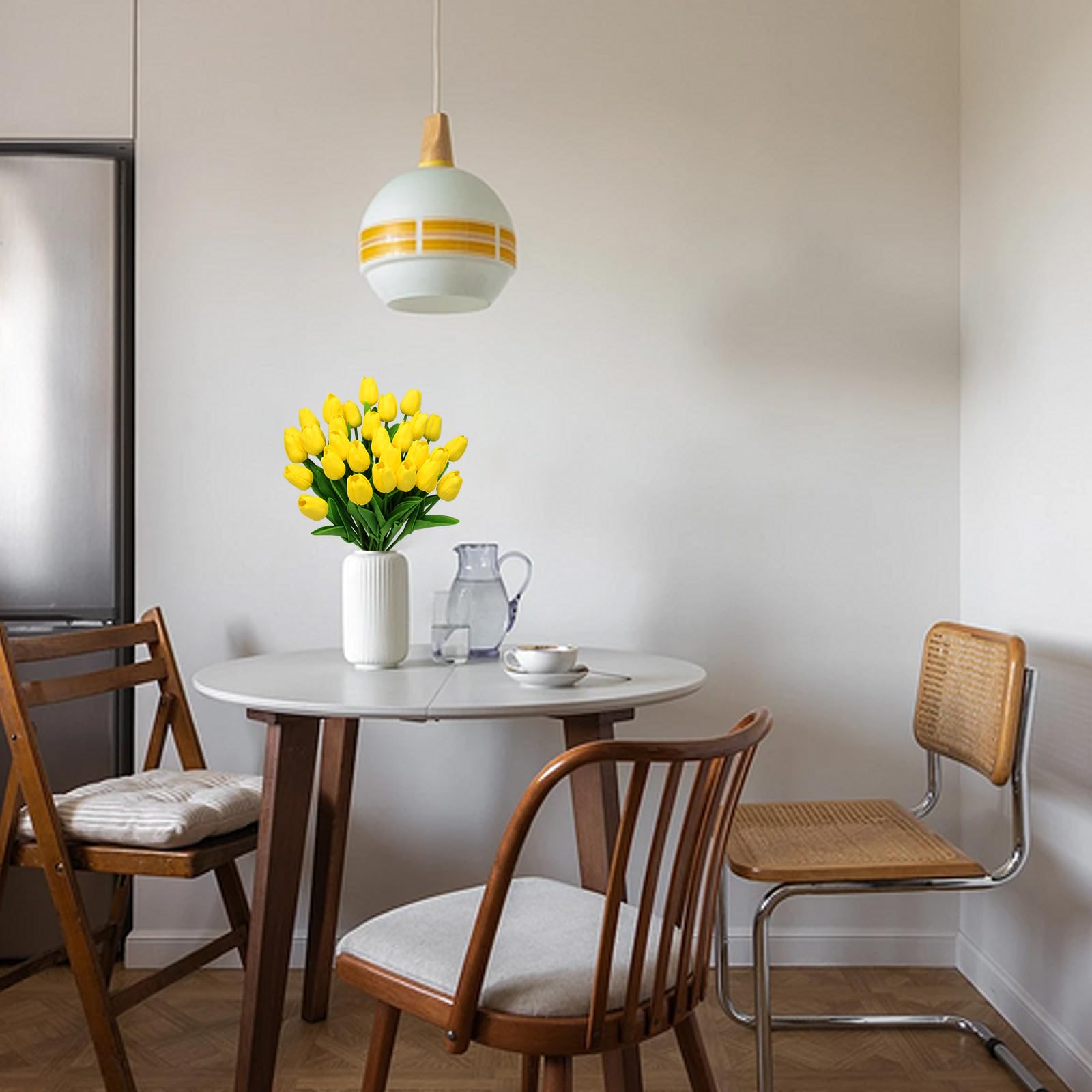 - Quantity: Package includes 28 Pcs yellow tulips artificial flowers faux tulip stems real feel PU tulips. This realistic faux tulips can match roses, pompom mummy flowers, baby breath and hydrangeas. These are individual stems, easy to arrange. You can use them alone in single stem flowers or in combinations.