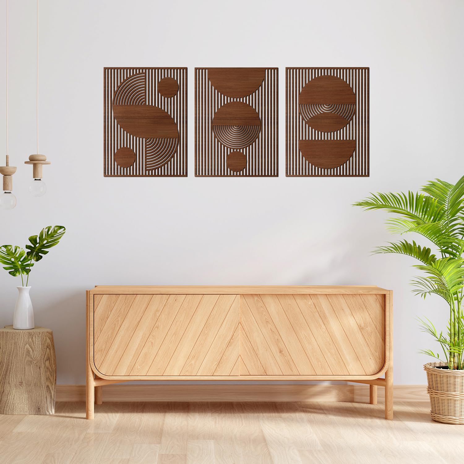 Elevate your decor with our mid century boho wood wall art set of 2. Whether in living rooms, bedrooms, or any space that craves an artistic touch, this set is a must-have addition for bohemian-inspired interiors.
