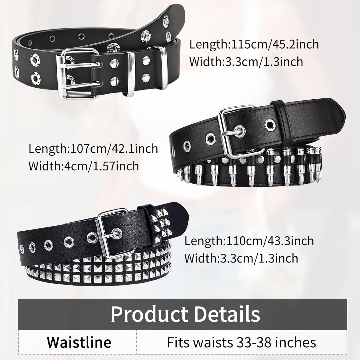 3 Pcs Studded Belt, Y2K Belt EMO Goth Belts Punk Rock with Bullet belts for Women Men