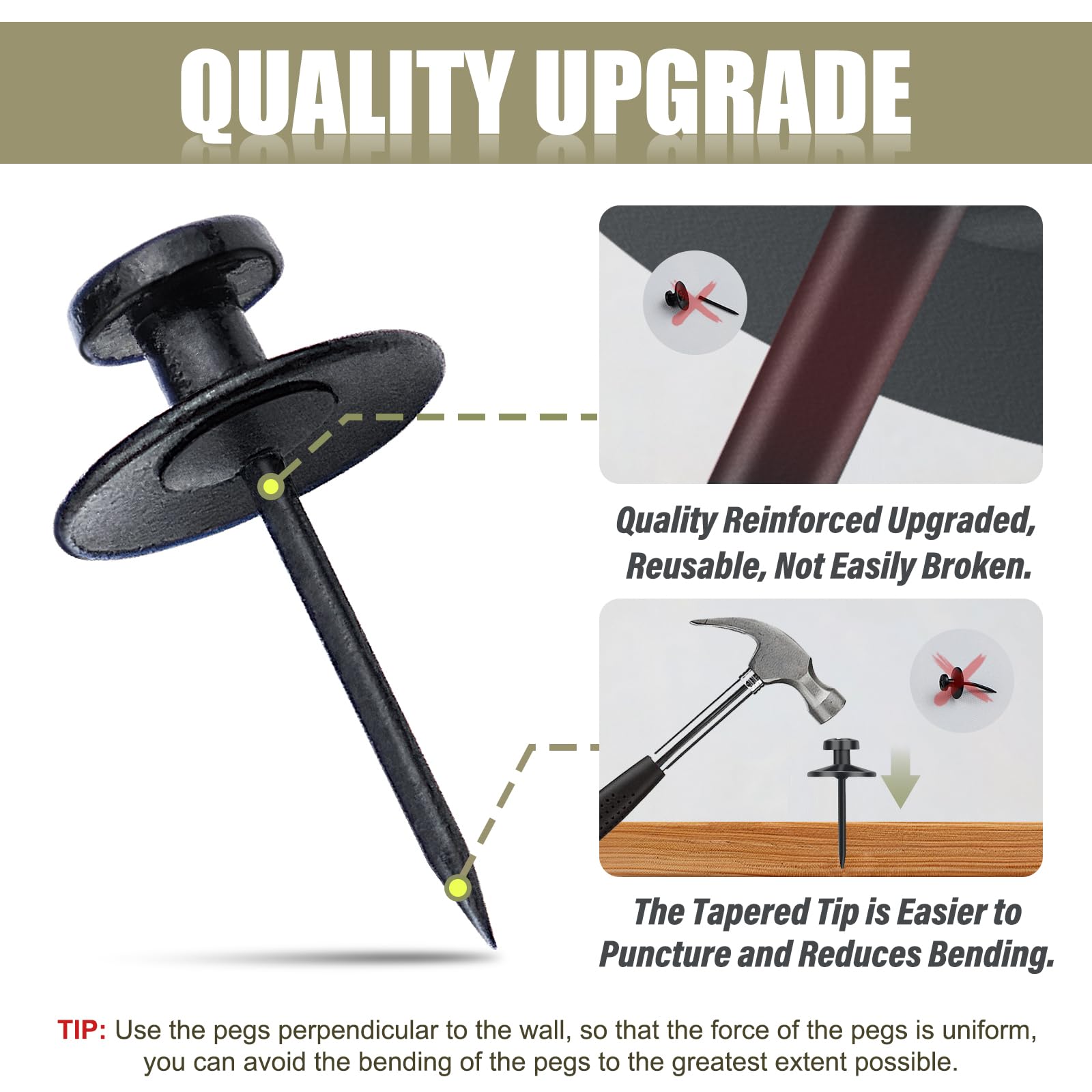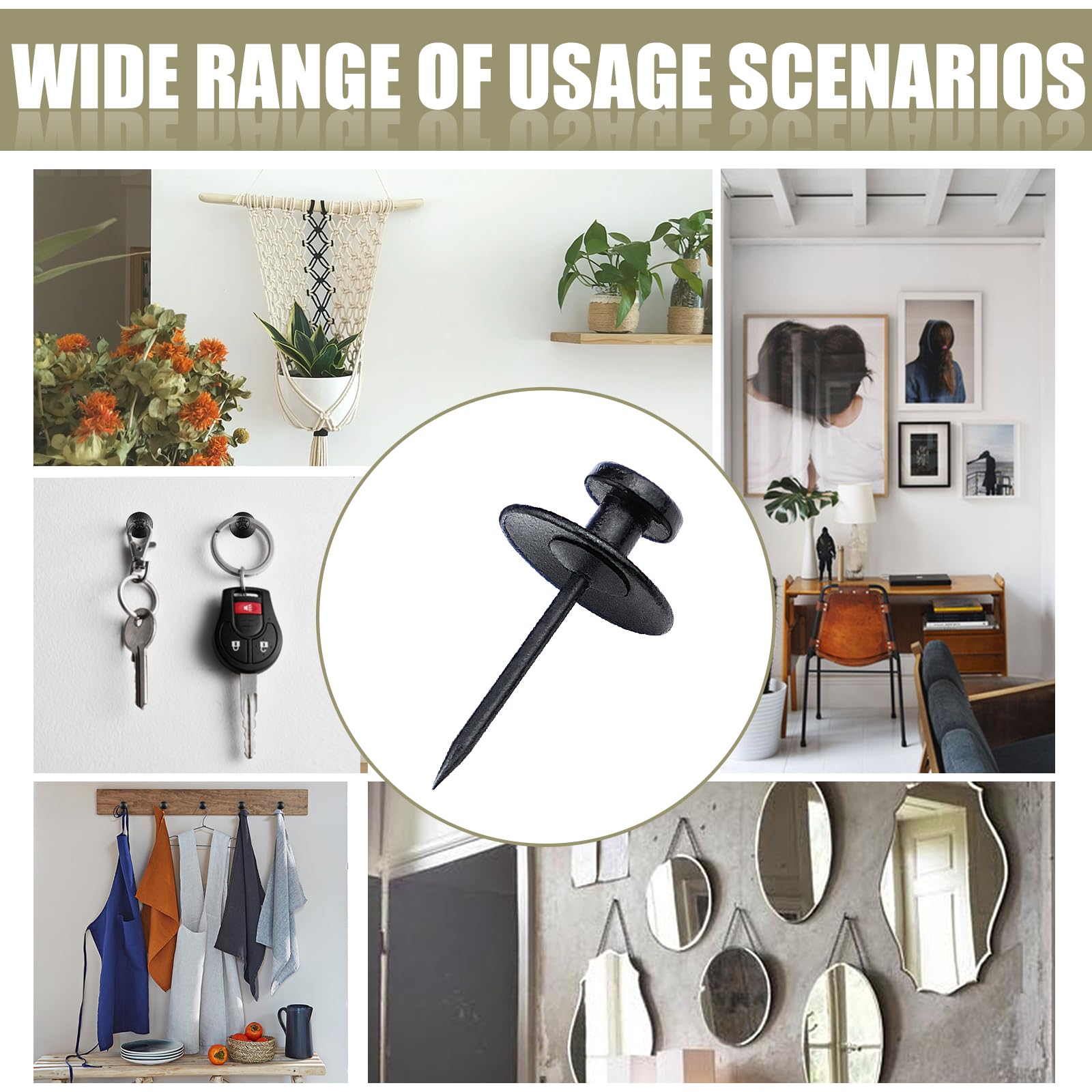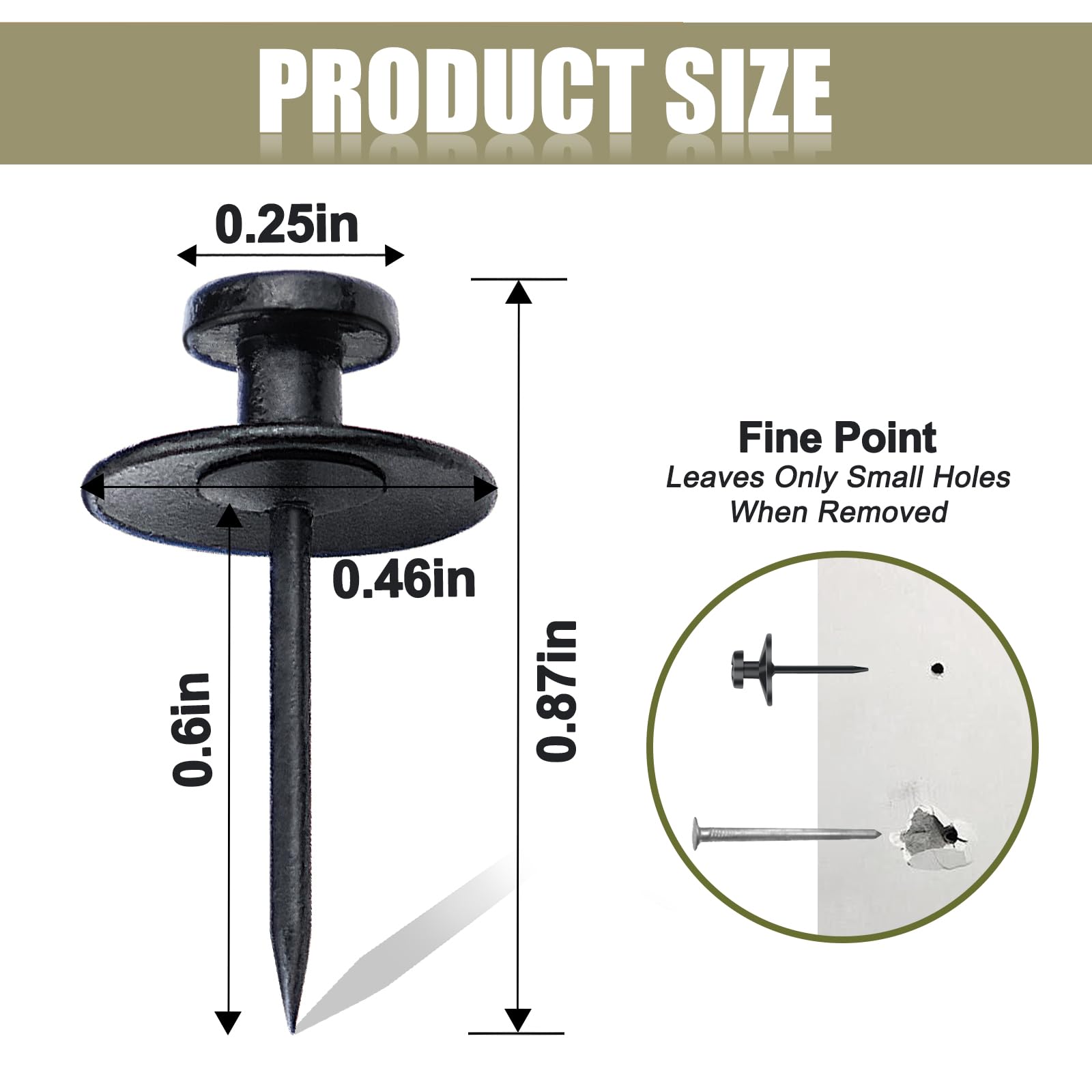 30 Pack Double Headed Picture Hanging Nails, Thumb Tacks, Push Pins for Wall Hangings, Wall Hooks for Home Office Photo Decor, Black