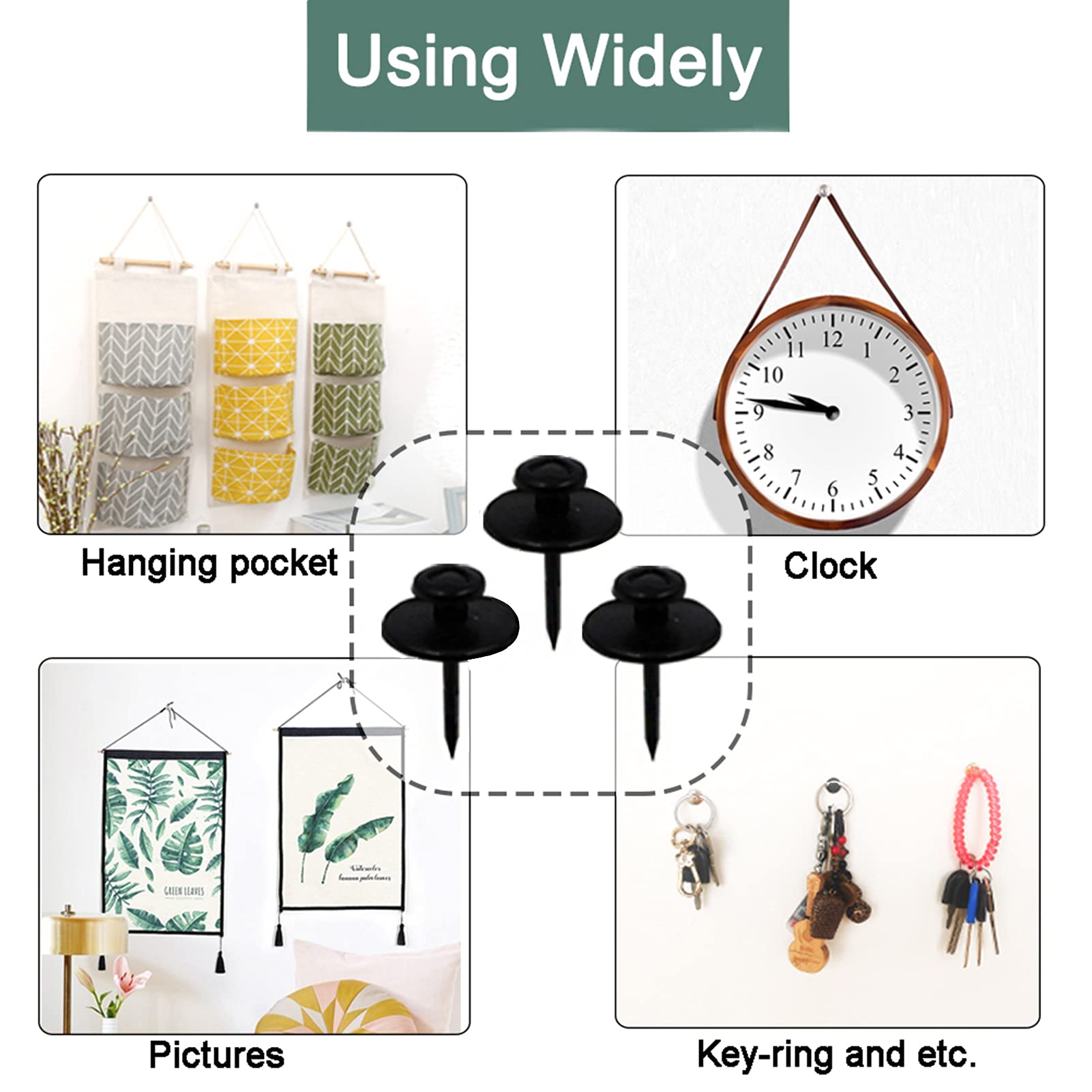 - Sturdy material - Picture hanging nails drywall were made of sturdy stainless steel, 30 PCS wall hooks for hanging decorative thumb tacks in black not only hardly get rusted, but also could offering powerful support to your treasured items. Perfectly meet your needs.