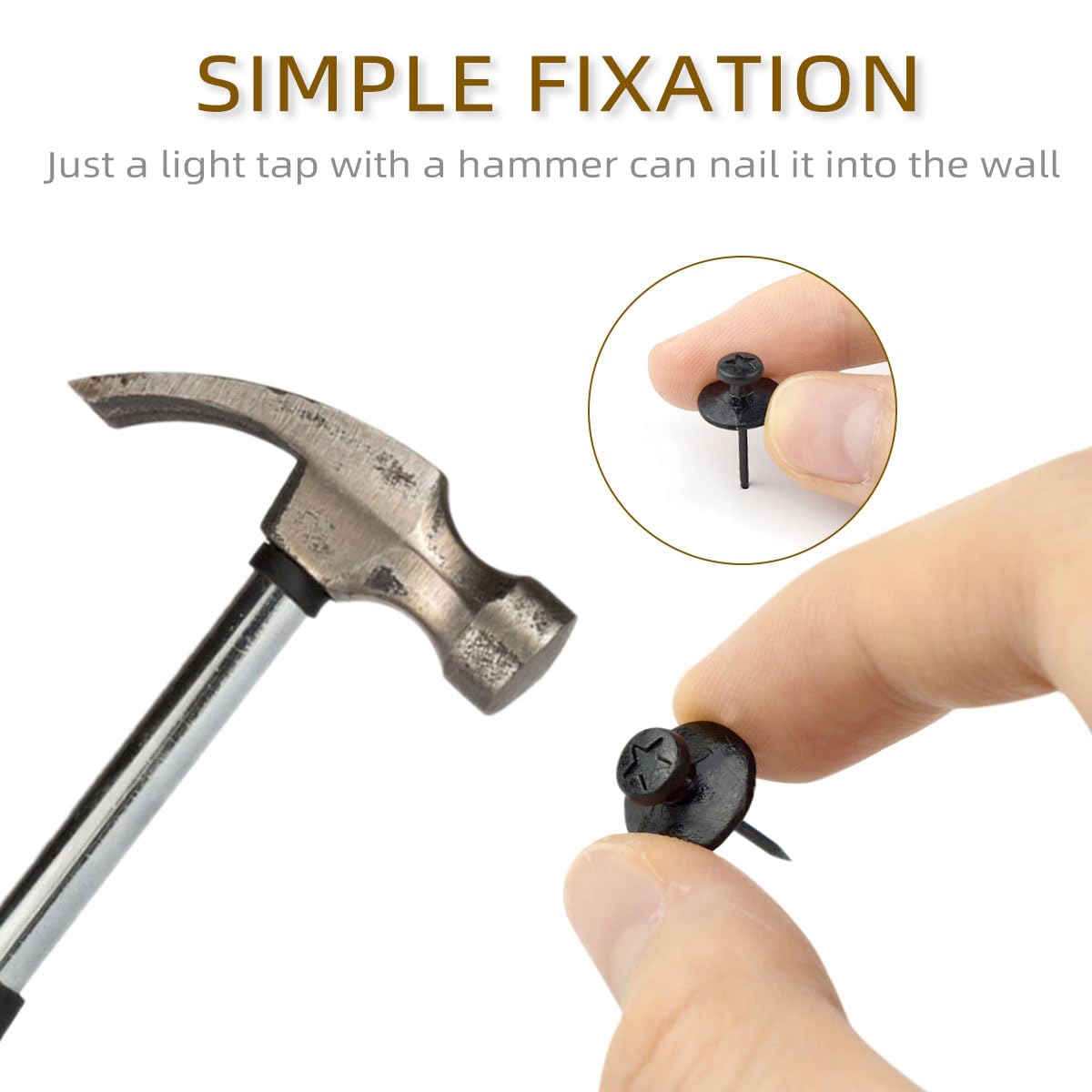 - 【Easy to Use】These decorative small nails pins have an excellent design, easy to install and remove. The pin is sharp enough, so just a light tap with a hammer can nail it into the wall. When disassembling, it will not leave a large hole to damage the wall, only a small hole that is easy to repair or paint over