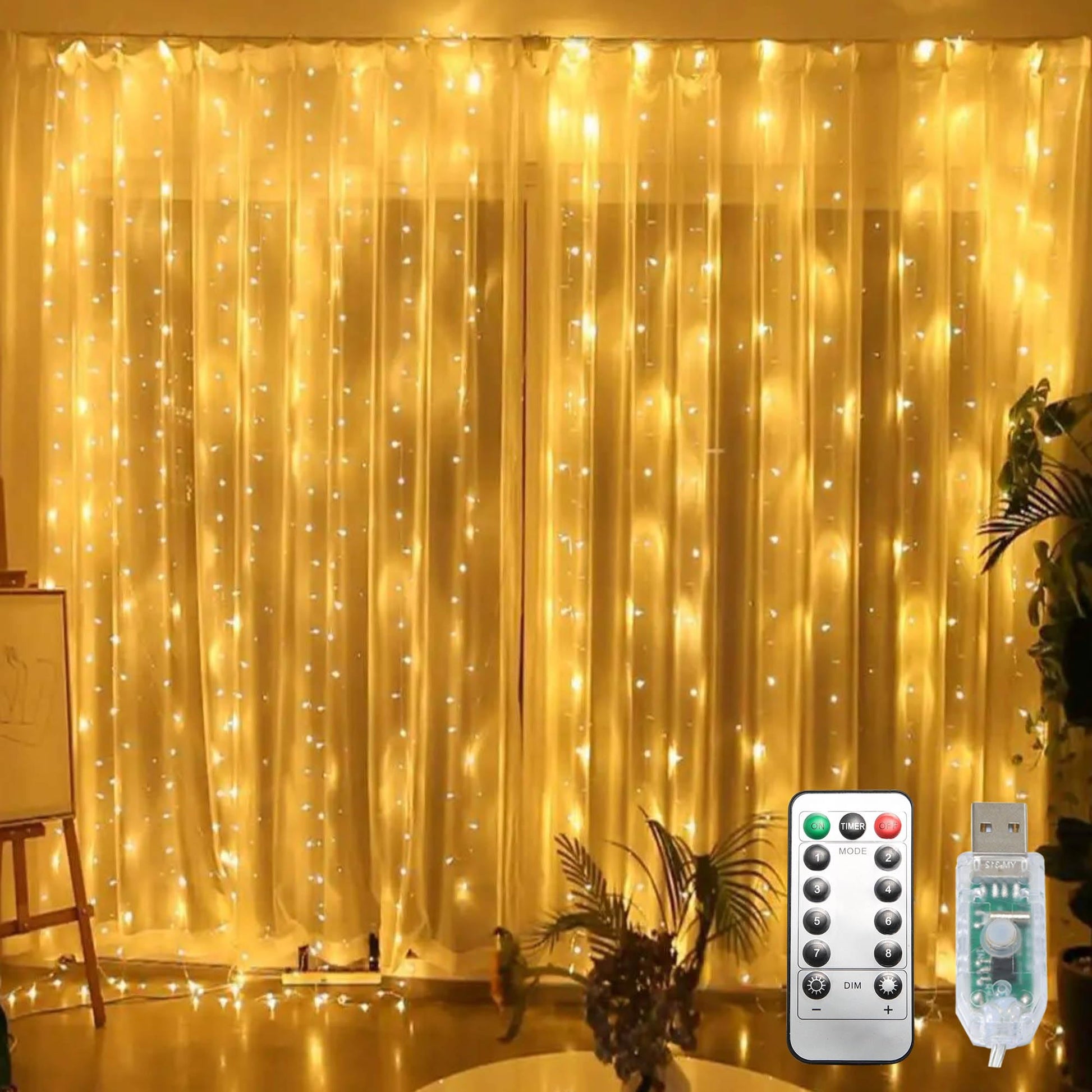- 【8 LIGHTING MODES TWINKLE CURTAIN STRING LIGHTS】Unlike other curtain light strings on the market, our fairy tale light string adds remote control and 8 light modes to fit different occasions and moods, you can control the light modes remotely to free your hands. The glow of this curtain light is warm, soft and not harsh, adding a classic and charming glow to your home decor.