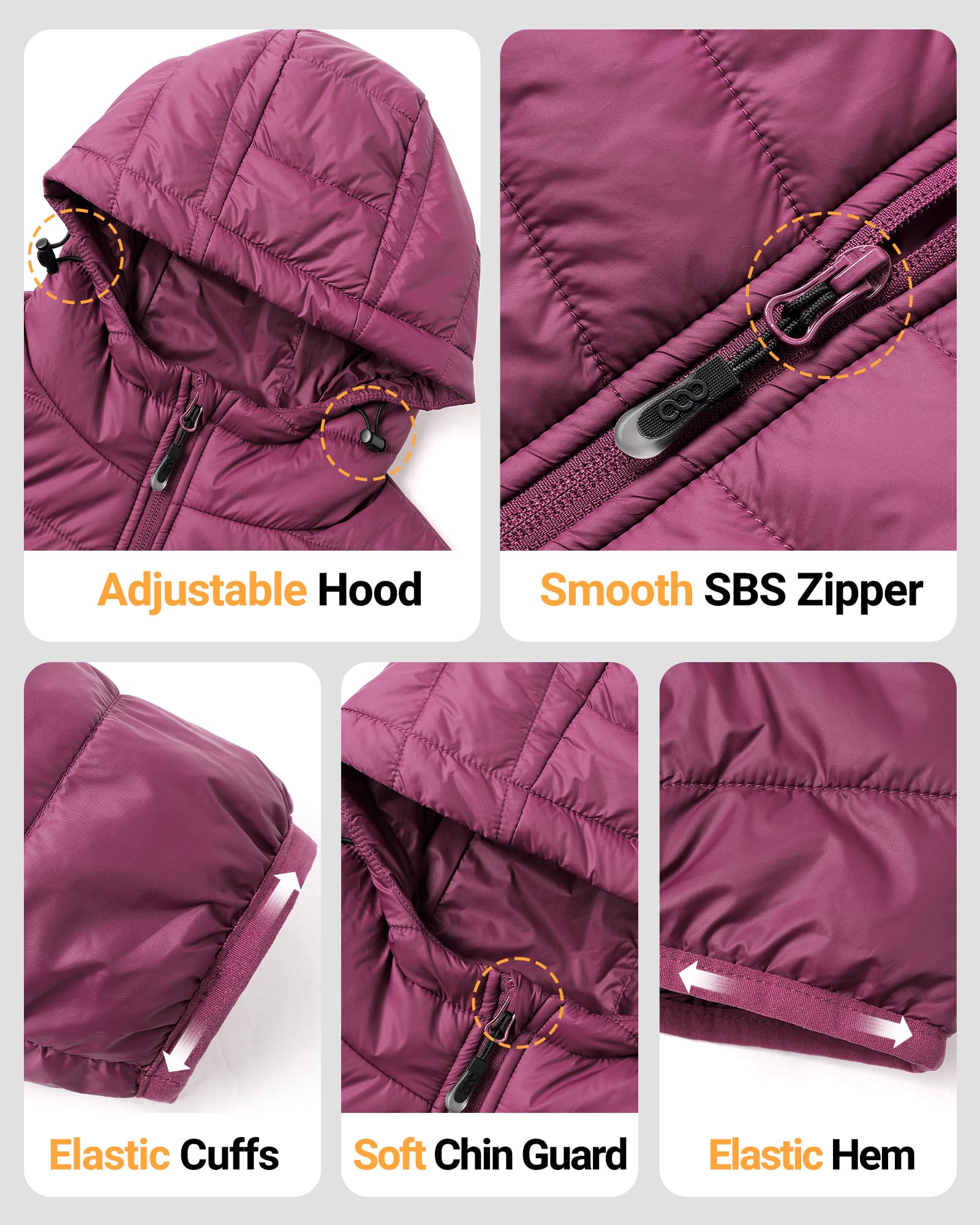 33,000ft Women's Hooded Packable Puffer Jacket Lightweight Warm Puffy Quilted Winter Coat