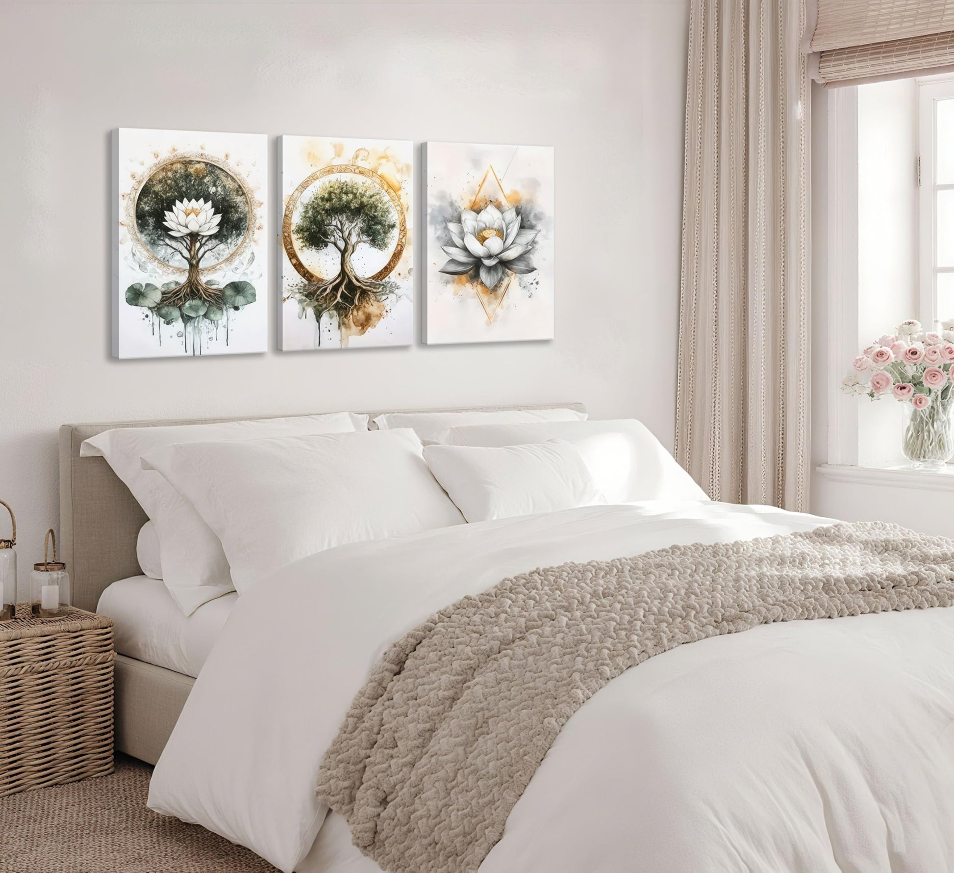 - Lotus Wall Decor:Transform your living space with our 3 Pieces of Tree of Life and Lotus Wall Art. These nature landscape abstract posters bring a touch of elegance and serenity to any room.