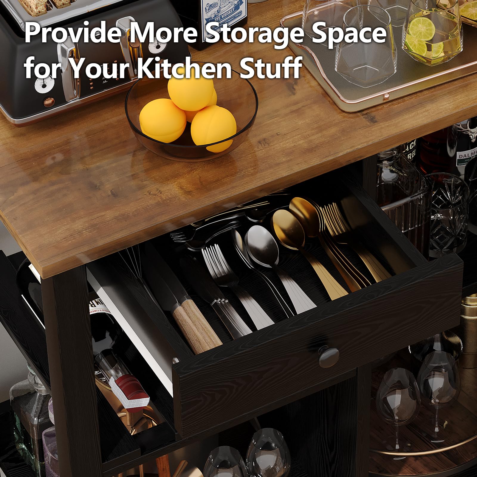 4 EVER WINNER Black Kitchen Island Cart with Storage, Farmhouse Rolling Portable Bar cart with Wine Rack,Small Islands Cart on Wheels for Kitchen