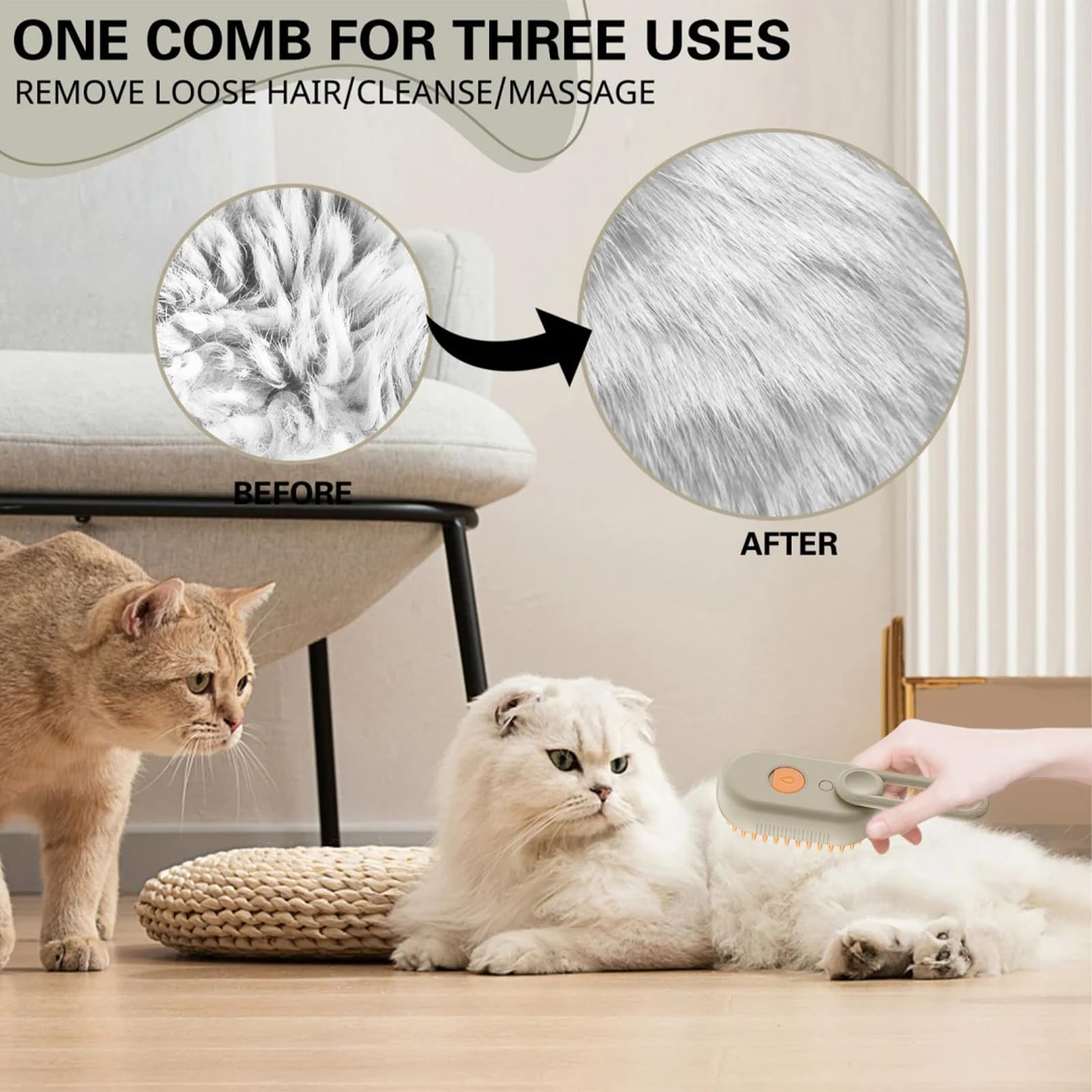 - 🐱【4-IN-1 PROFESSIONAL CARE】The newly upgraded 4-in-1 cat steam brush combines steam massage, deep cleaning, hair removal and anti-static combing. It softens the cuticle by penetrating the hair follicles with micron-level steam, and effectively reduces pet hair shedding with a flexible massage brush head, allowing your furry friend to enjoy a SPA-level care experience.