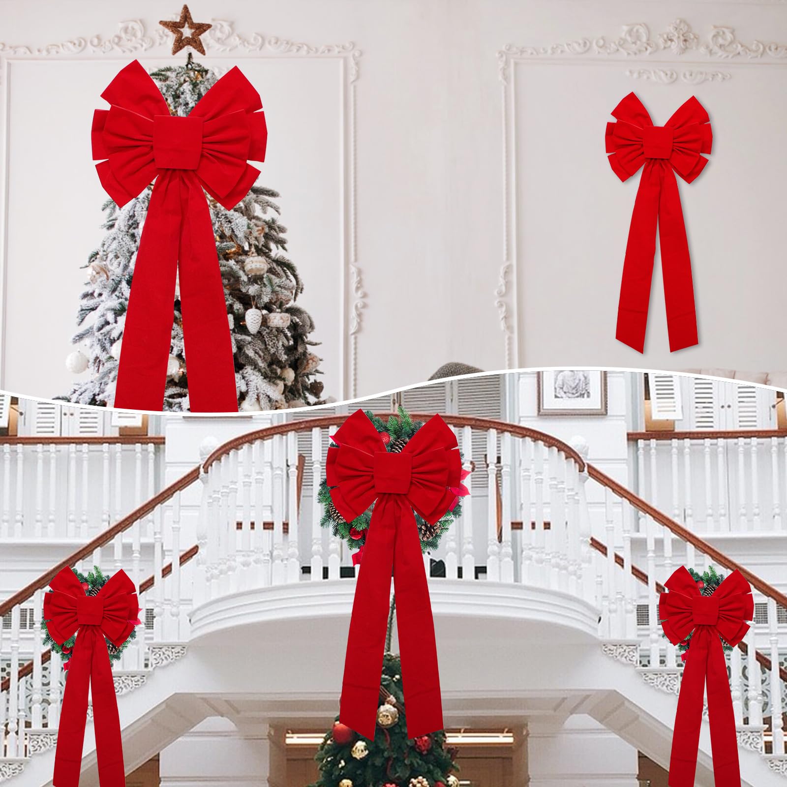 - 【Soft Velvet Material】This red christmas bows is made of velvet material with Fixed rope. Unique design, even if it is squashed, it can be manually restored to fluffy and never deformed. Please note that if you receive a pleated bow, please iron it.