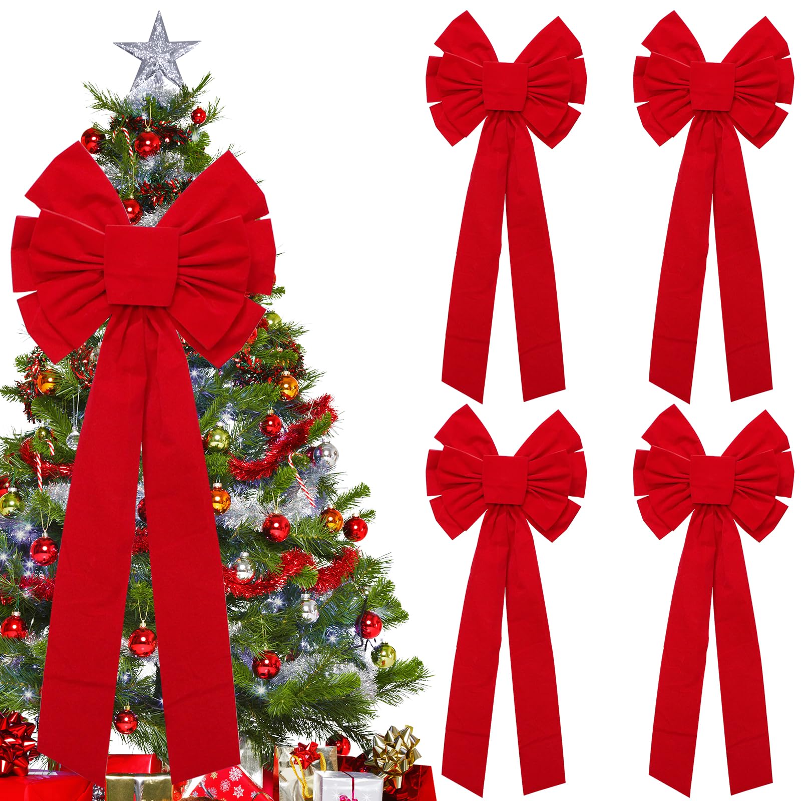 4 Pack Christmas Tree Bow Topper Red, 18”x35” Car Bow, Christmas Bows Decoration Large, Wreath Bow, Christmas Red Velvet Bows, for Xmas Home Front Door Patio Outdoor Decor (Red 2, 4 Pack)