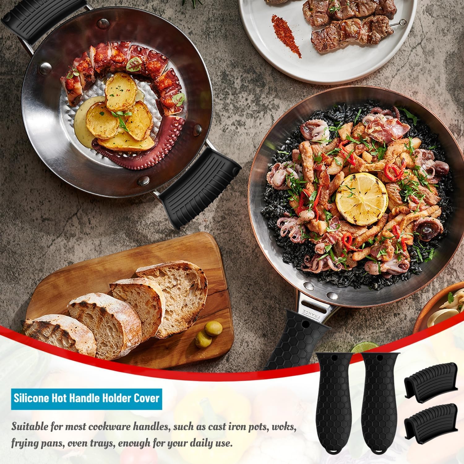 - Package Quantity: Each pack includes 2 silicone hot handle covers and 2 silicone assist handle grips in black, providing enough for daily use, replacement, and sharing. The classic colors add a decorative touch and are easy to spot.
