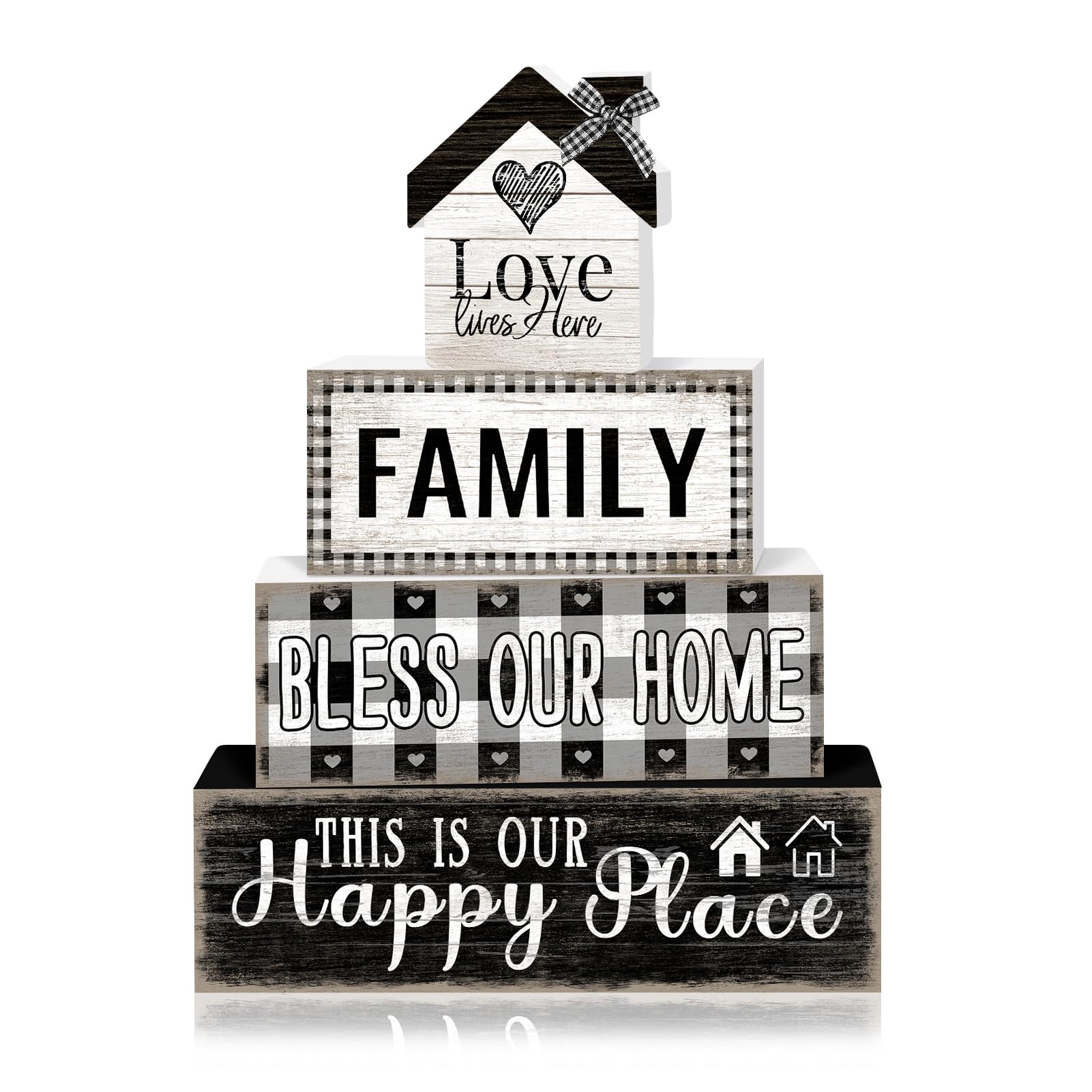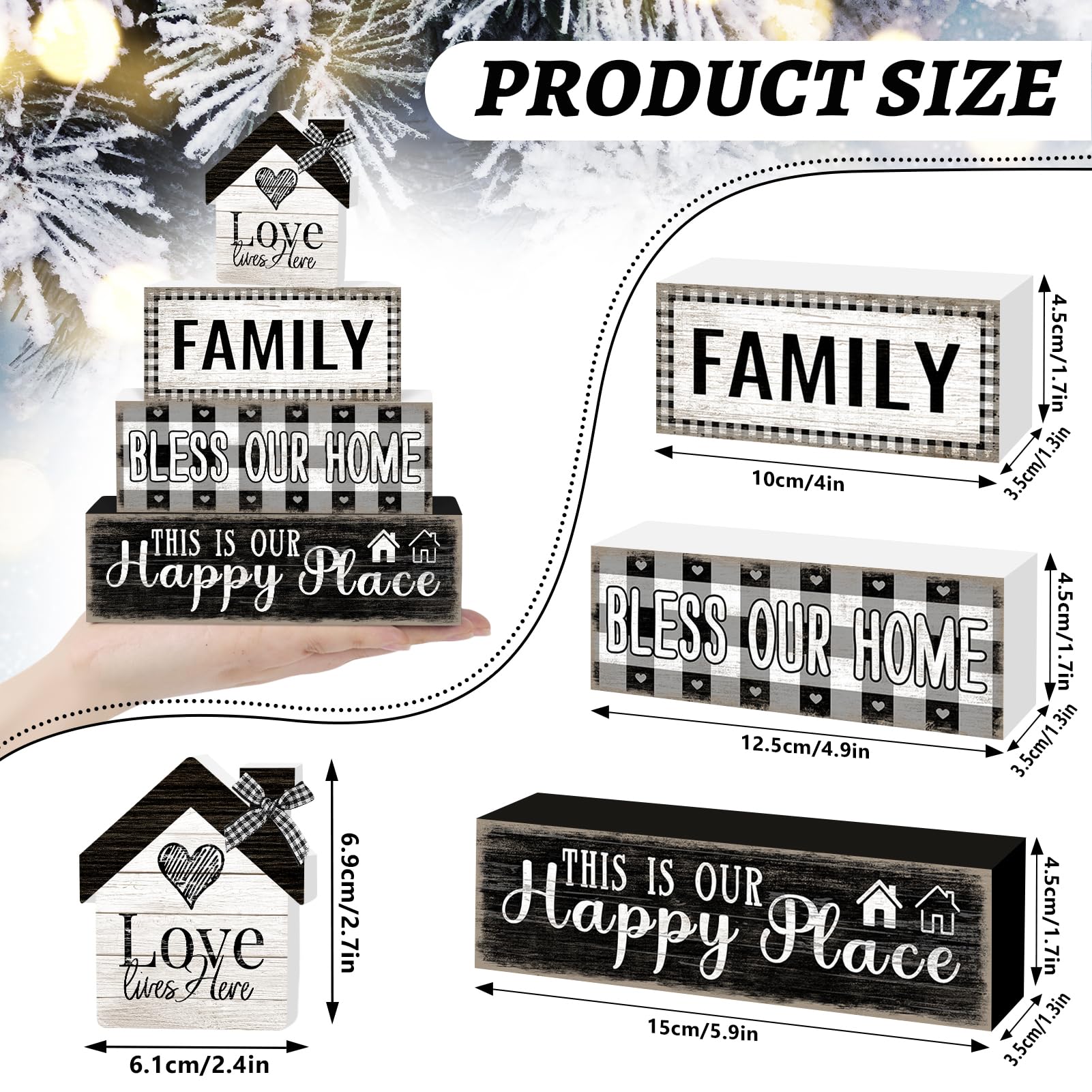- Ideal Size for Versatile Displays: Includes three wooden blocks (5.9” x 1.3” x 1.7”, 4.9” x 1.3” x 1.7”, and 4” x 1.3” x 1.7”), plus one small love home. Perfect for tiered trays, mantels, kitchen shelves, or entryway tables.
