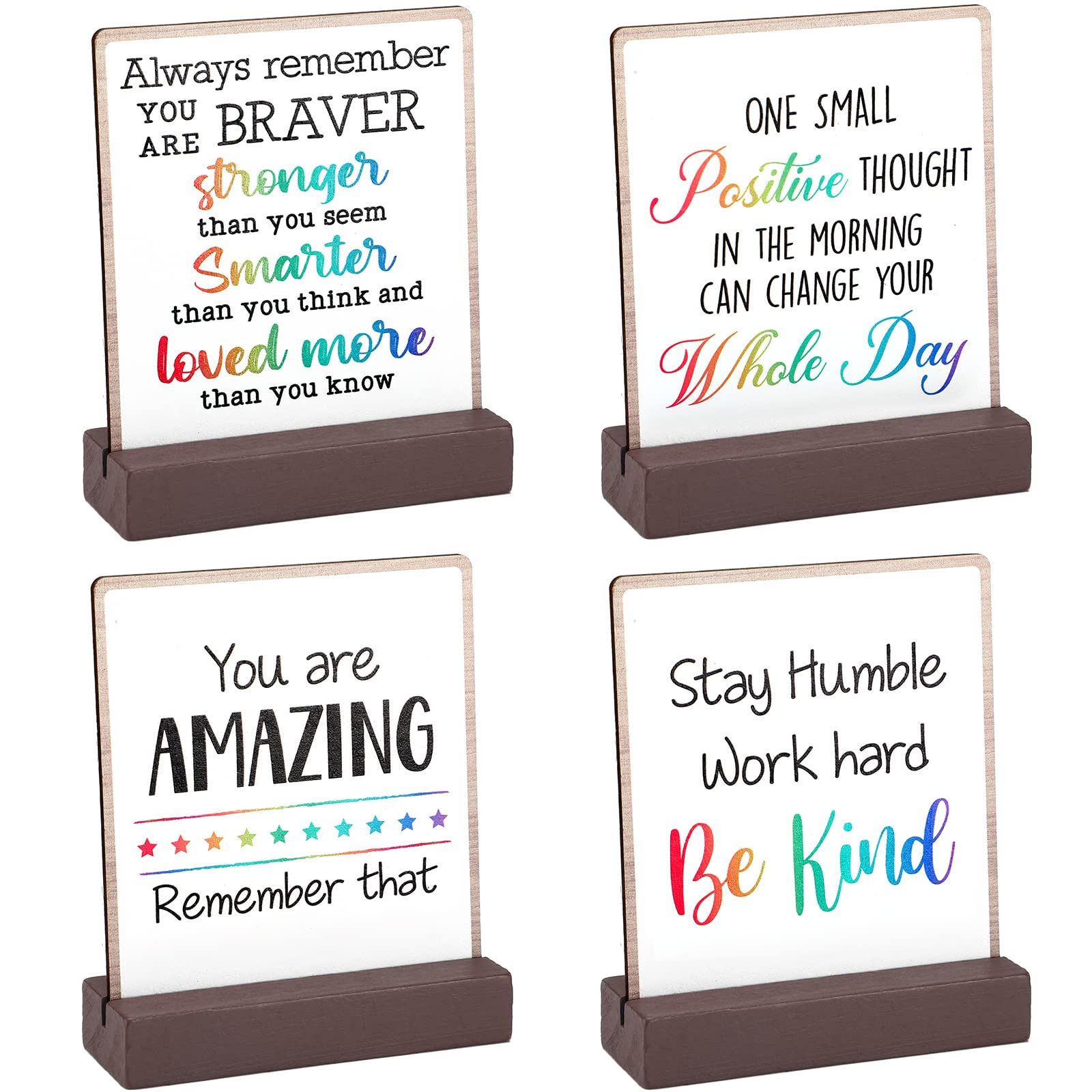 - Suitable Size: each of our inspirational desk decor is divided into 2 parts, the inspired wood plaque measures 10 x 11 cm/ 3.9 x 4.3 inches in width and height, and the wooden stand measures 3.8 x 10.4 x 1.8 cm/ 4.1 x 1.5 x 0.7 inch in width, length and height, they can fit well with each other, and the whole wood table decor will not take up much space