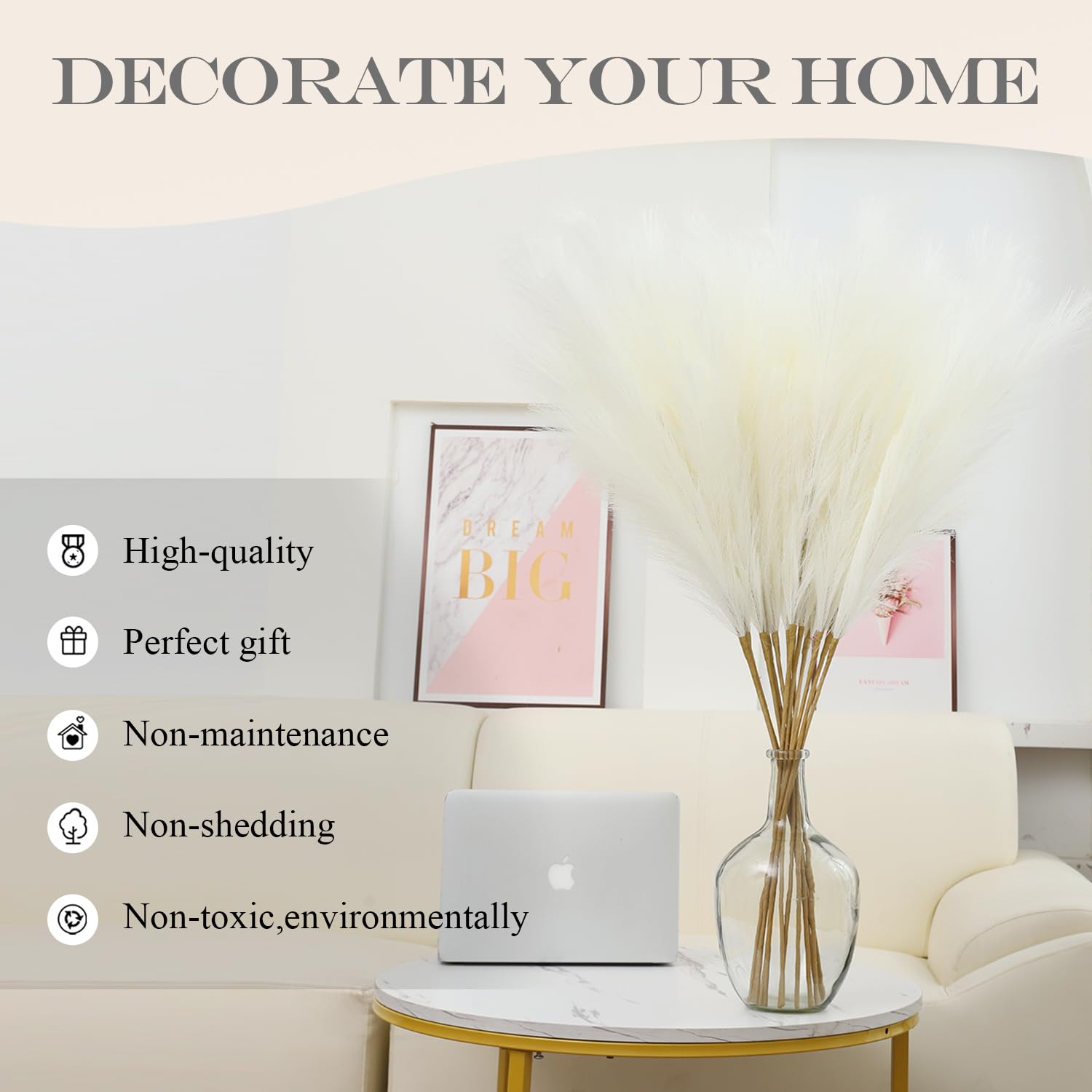 43" White Pampas Grass Fluffy - 8 PCS Tall Faux Pampas Grass Decor Artificial Pompas Grass for Floor Vase Filler Wedding Boho Home Baby Shower Mothers Day Decoration