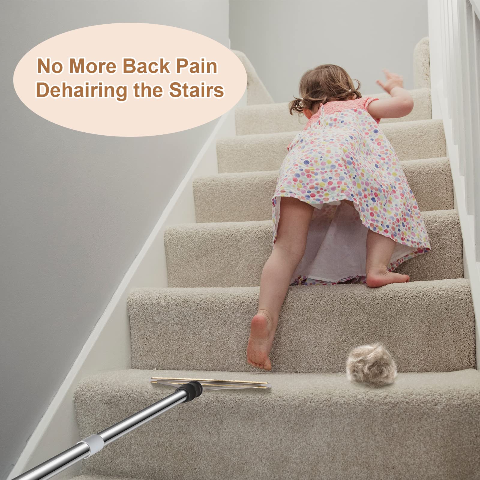- Adjustable Long Handle, Making Your Cleaning Job More Efficient -- 3 sections of sturdy stainless steel poles with 2 handle length( 33”and 47”) optional to suit your specific cleaning needs: 47”for carpets and 33” for couch. Also this pet hair remover can easily reach under sofas, stairs creases and other hard-to-reach corners without having to bend down.