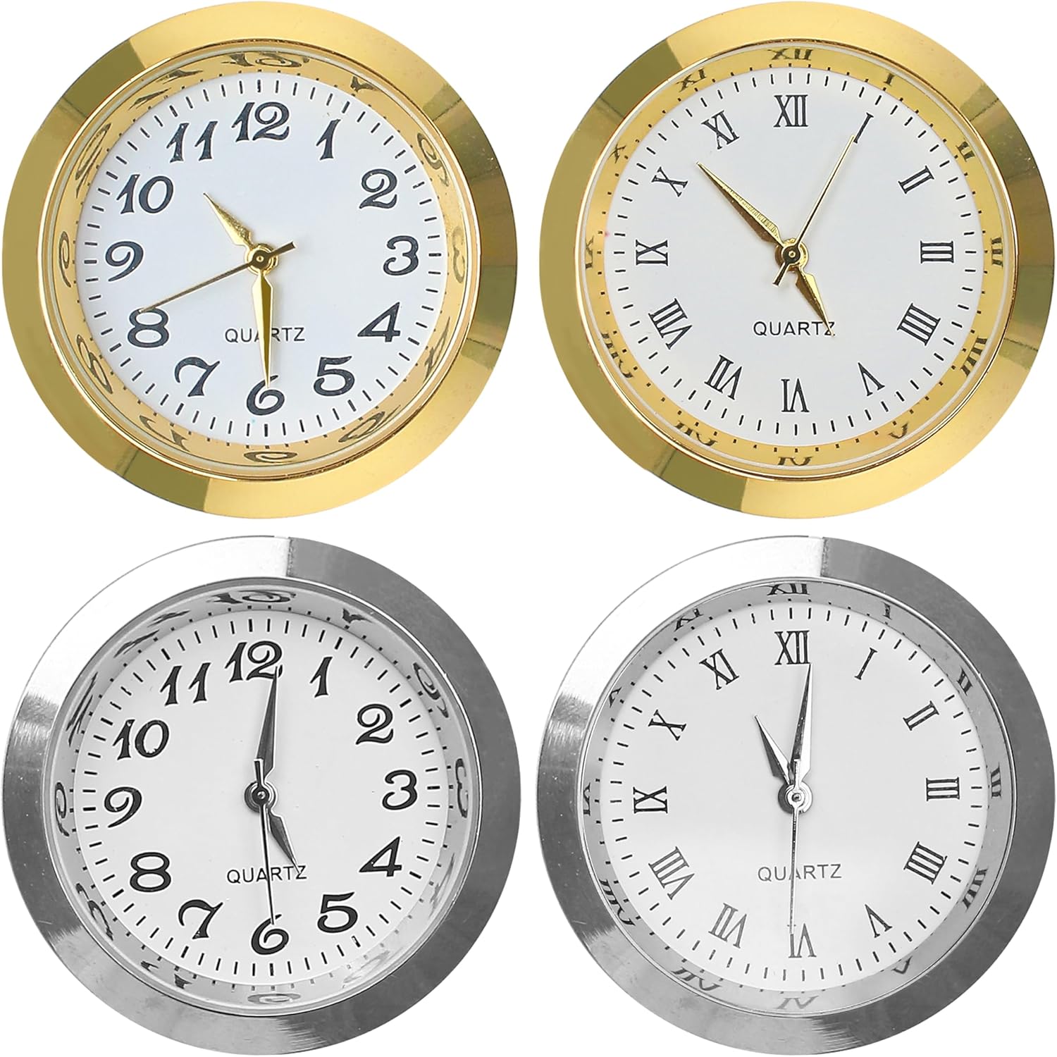 4PCS Mini Clock Insert Face Replacement, Fit 35mm (1.38") Hole Diameter, Round Inner Miniature Crystal Roman Numeral Quartz Movement Metal Gold Silver Bezel Supplies for DIY Craft Repair Easy Read
