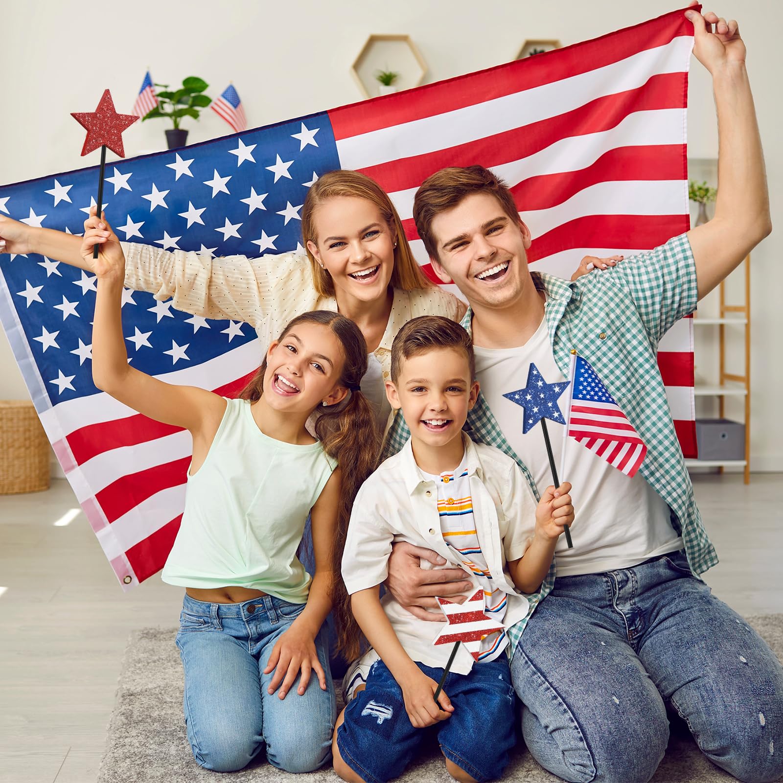 - High-quality material: These 4th of July decorations are made of high-quality wooden material, with shiny powder printed on the surface of the wooden stars, bright colors, sturdy and durable.
