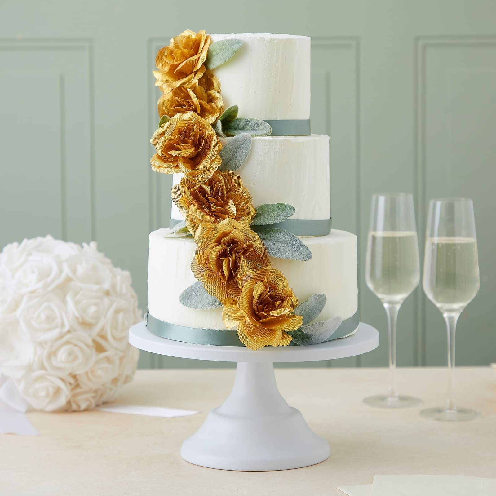 - Just the Right Size Polyethylene Foam Flowers: Measuring 3 inches wide and 1.3 inches tall, these gold fake flowers are easy to attach to vases, holders, garlands, and backdrops using hot glue or pins