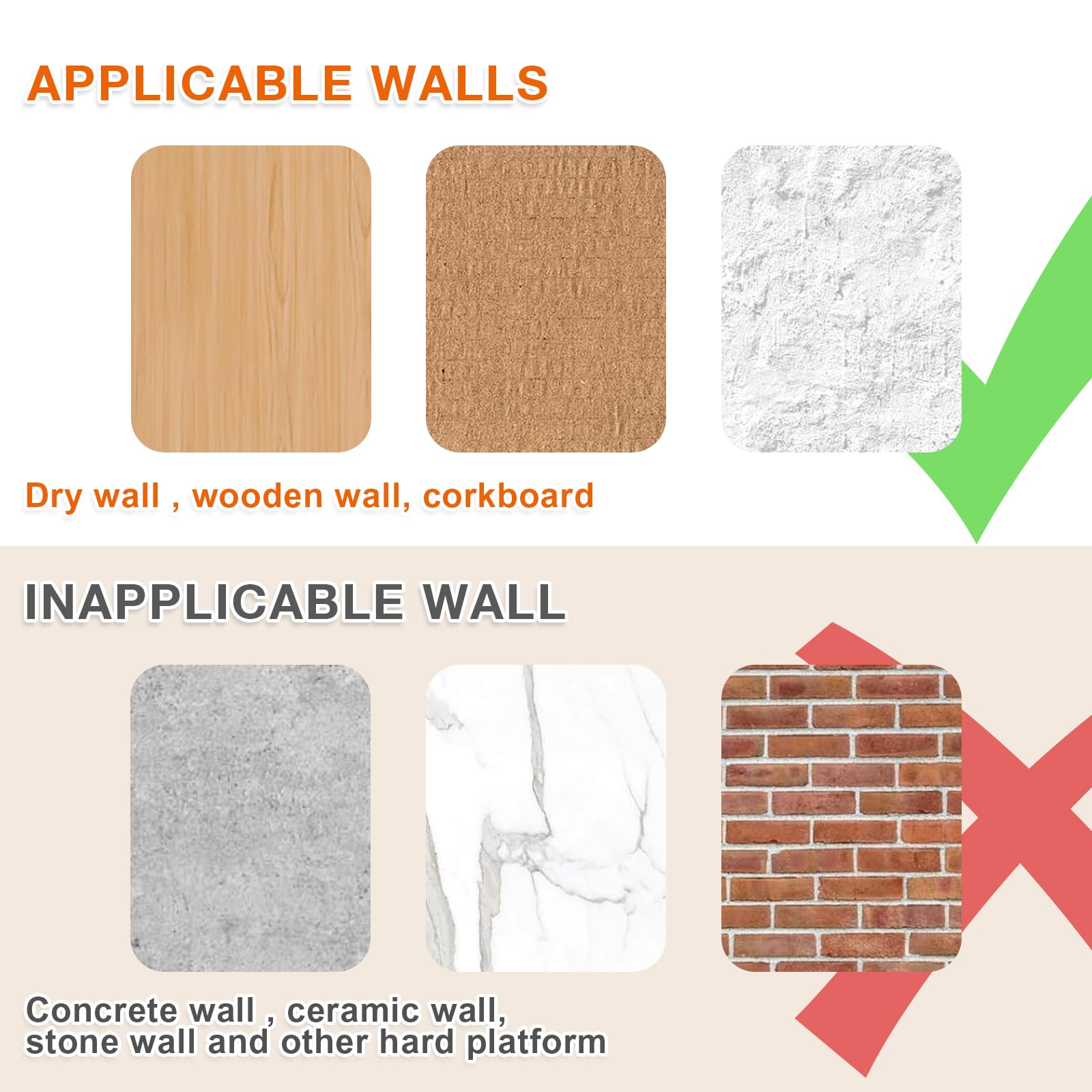 - TRACELESS THUMBTACKS: The holes made by the Hang pictures on wall without nails are very small and almost leave no marks, which can avoid damaging the walls. The picture hangers enable you to create beautiful displays without leaving a lasting impact. Please consider the hardness of the wall before purchasing. Our wall hooks for hanging may not be suitable for very hard or fragile materials, so be sure to evaluate the wall type in your home for the best results.