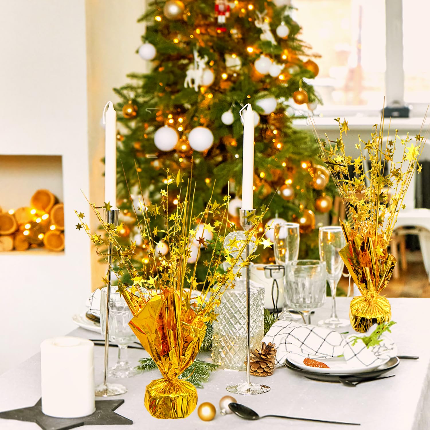 - Star Centerpieces Set: 6 pack metallic foil spray centerpiece for tables, decorated with metallic bristles and stars, shining attractive. you will receive 6 pieces of star centerpieces for tables, enough for your holiday party, fall event or family dinner decorations