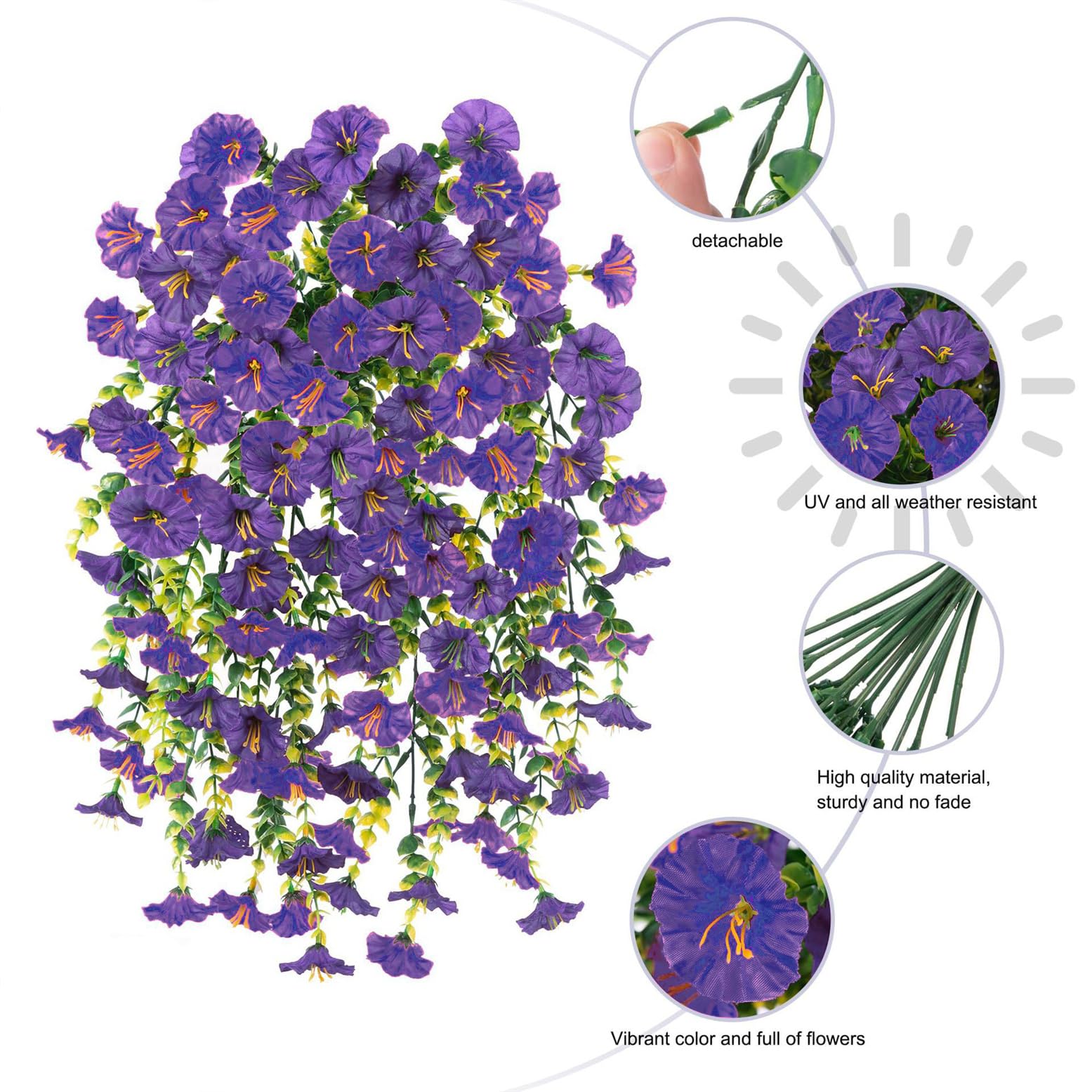 - MAKE YOUR LIFE FEEL BEAUTIFUL: These Lifelike Artificial Hanging Plants Outdoor Symbolize Beauty and Happiness, Perseverance Never Withers, and artificial petunias for Outdoors are Not Only Decorations, But Also Choices That can Make Your Mood Better and Your Life Happier