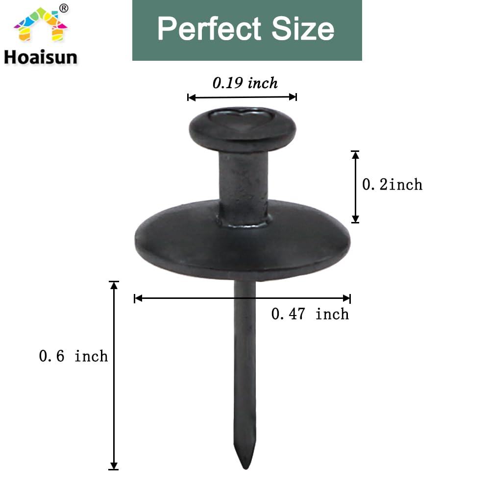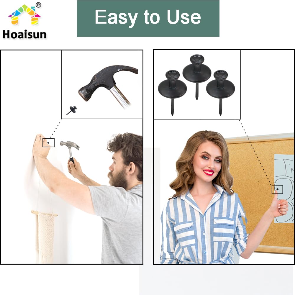 - Sturdy material - Picture hanging nails drywall were made of sturdy zinc alloy, 60 PCS decorative nails in black not only hardly get rusted, durable and reusable, heavy duty push pins are compact in size and light in weight, but have a strong carrying capacity. Perfectly meet your needs. Note: The nail is sharp, please keep it away from children.