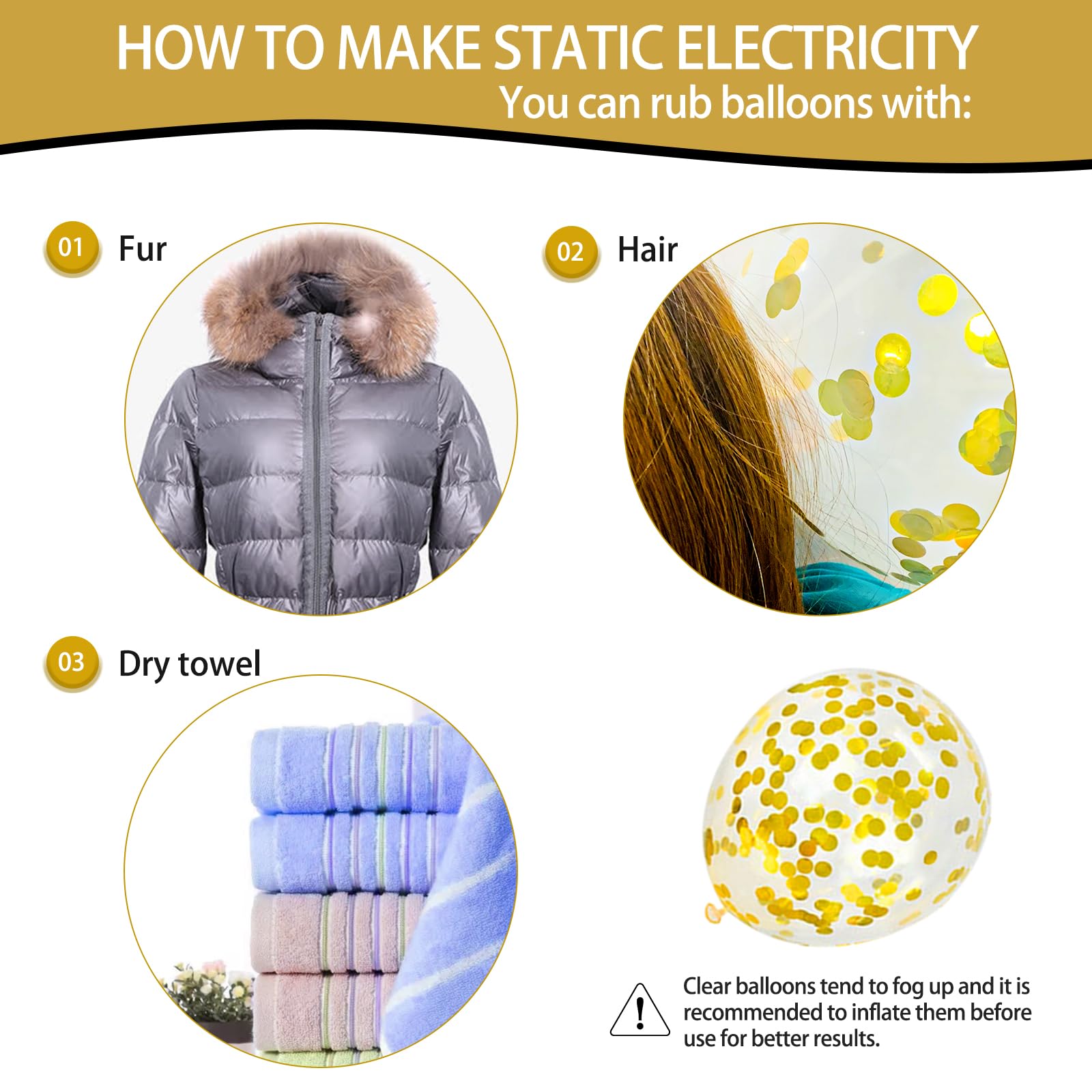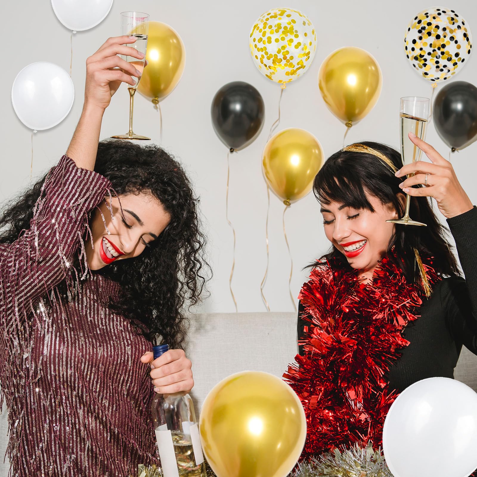 - 【Multipurpose】You can these balloons make black white gold balloon garland kit, After blowing up the confetti balloons, rubbing the balloon on the hair or fabric and shaking it will help the confetti stick to the side, which can make the balloon look more beautiful. When the party is over, you can pop the balloons to let the confetti fall, adding fun to the party.