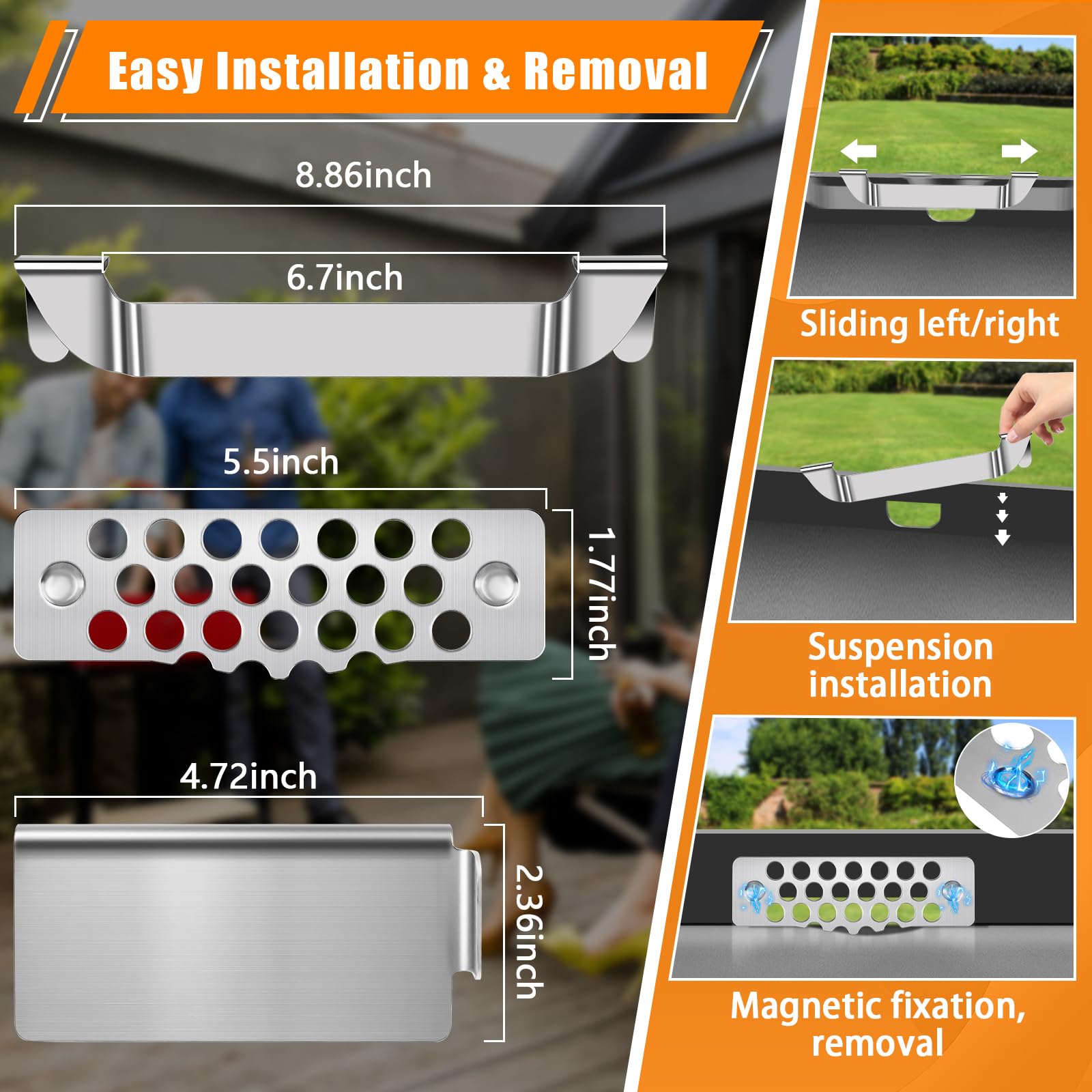 - Magnetic Design, Easy Installation: Spatula holder and griddle grease gate kits are installed without tools, easy to remove at any time, The grease door has a built-in magnet that automatically attaches to the griddle. The spatula holder can be moved freely at the edge of the oven according to usage needs; Magnetic hooks with strong load-bearing capacity, compatible with any metal and steel surface: grills, microwave ovens, refrigerators, metal doors, etc