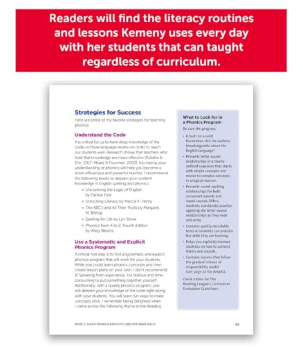 Details: In this no-nonsense guide, primary reading expert and classroom teacher Lindsay Kemeny shares seven ways K–3 teachers can modify what they are currently doing to transform their reading instruction. Each chapter focuses on a critical area of foundational reading–from the most efficient ways to teach phonemic awareness and phonics to the most effective ways to boost comprehension. Kemeny clears up confusing terms and concepts and offers up “do-tomorrow” strategies to help kids acquire reading skills efficiently and successfully transfer those skills to their reading. Readers will find the literacy routines and lessons Kemeny uses every day with her students detailed in the book, along with links to video demonstrations showing how she puts them into practice.