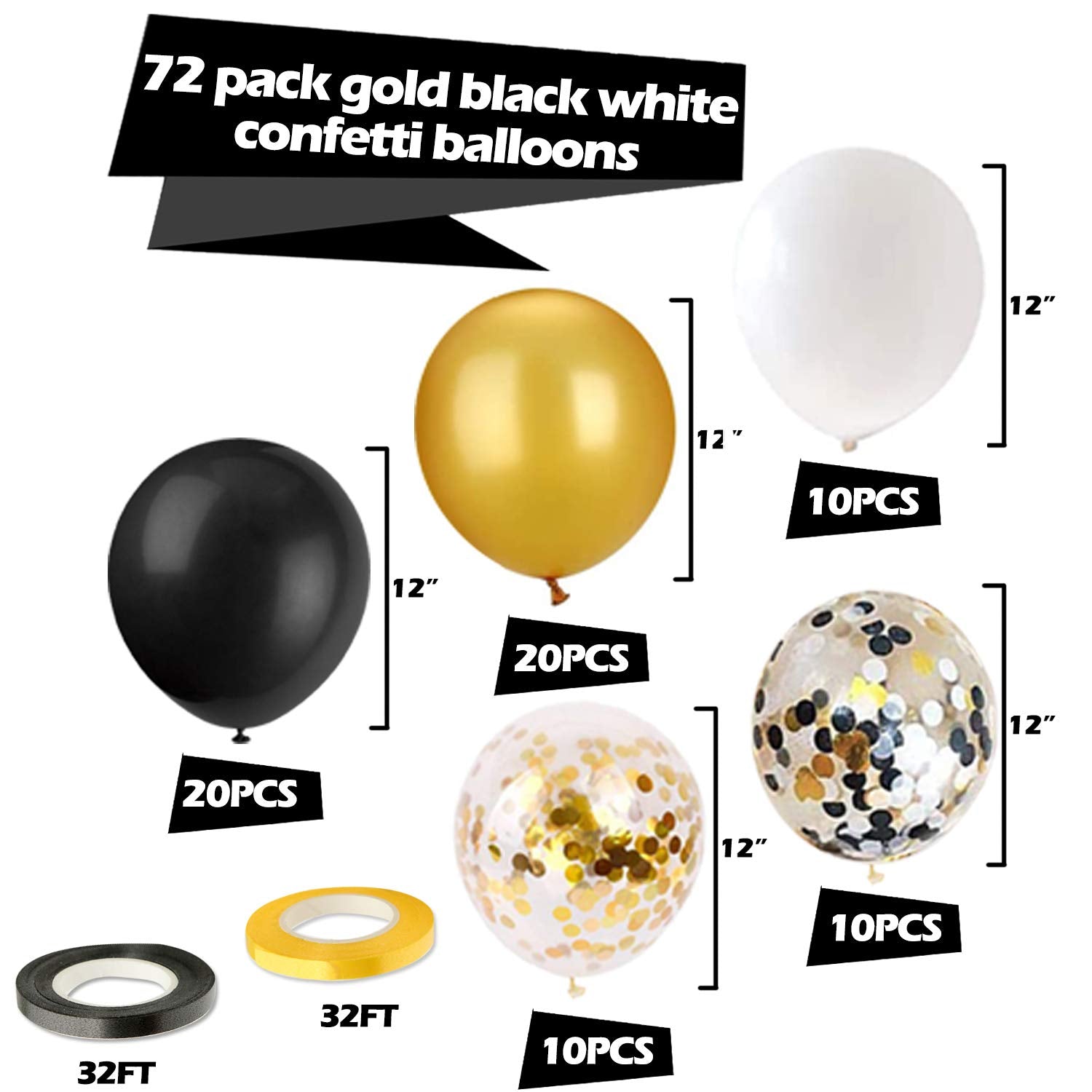 72 Pack Black Gold Confetti Balloons Kit, 12 Inch Black Gold White Balloons and Gold Confetti Balloons with Balloon Ribbons for Graduation Birthday Wedding Baby Shower Party Decorations