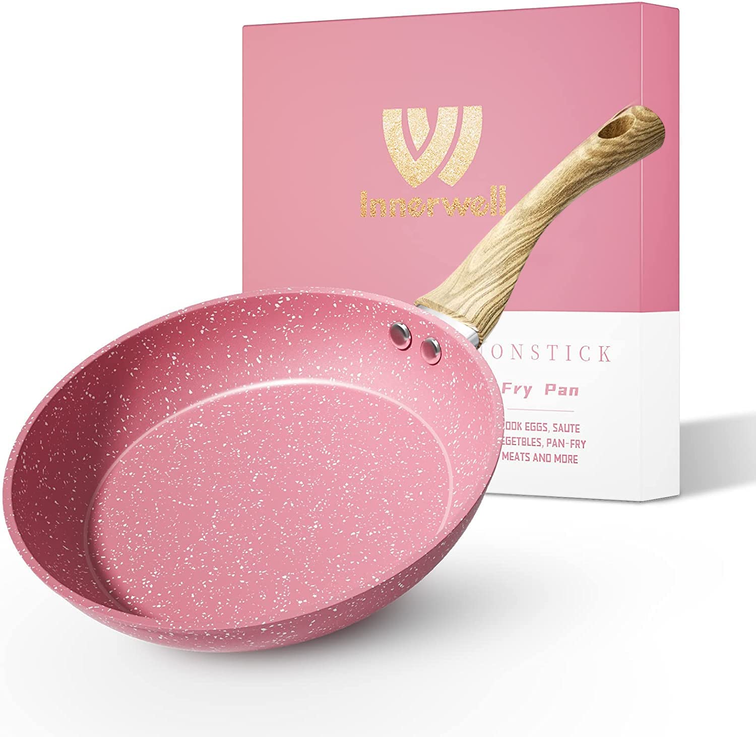 - 【Ultra Nonstick Coating】Innerwell eye-catching pink speckled textured granite nonstick coating, Toxin-free, Without containing any harmful substances such as PFOA, PFOS, PTFE, CHROMIUM, etc. Ideal for cooking with less oil and delivering the ultimate food release.