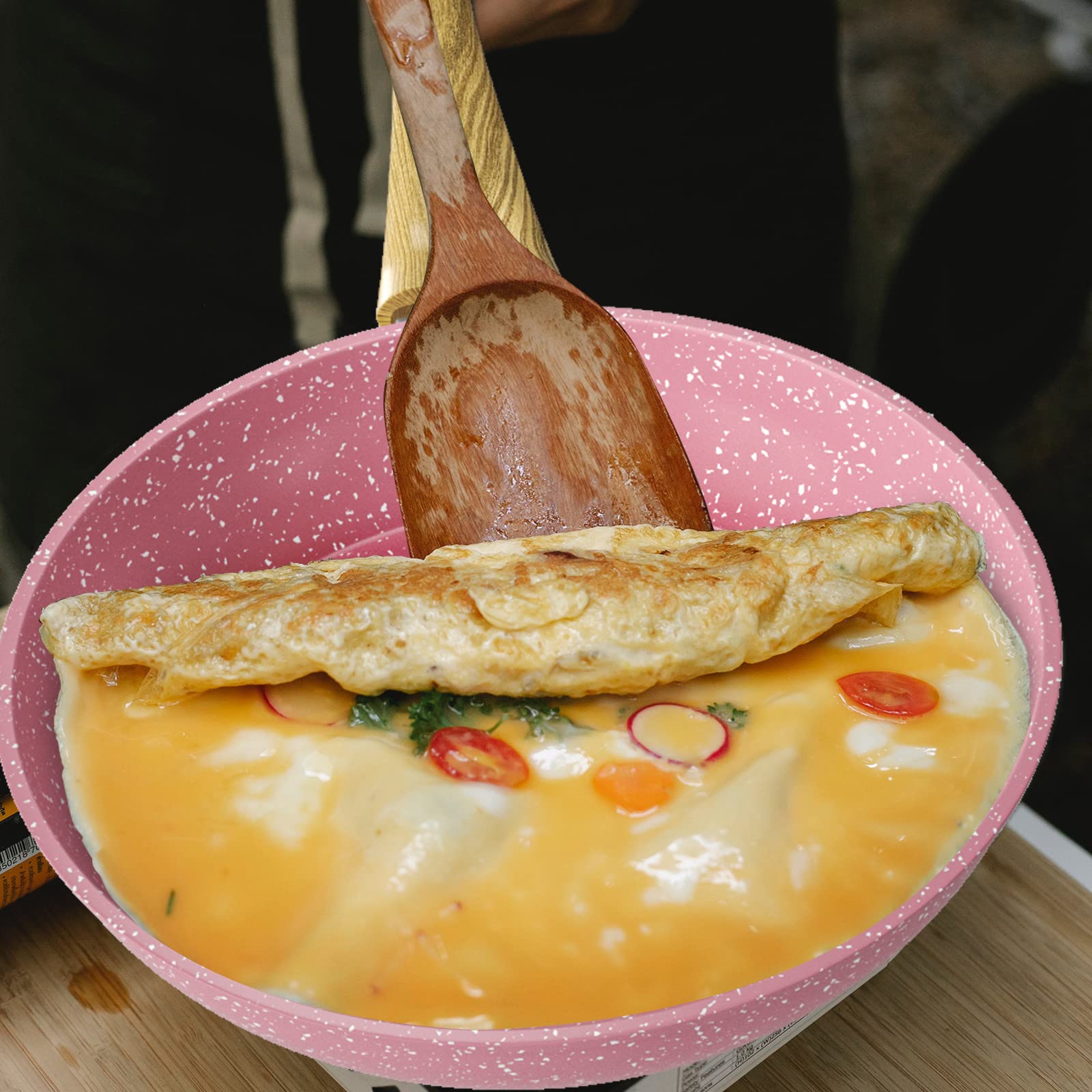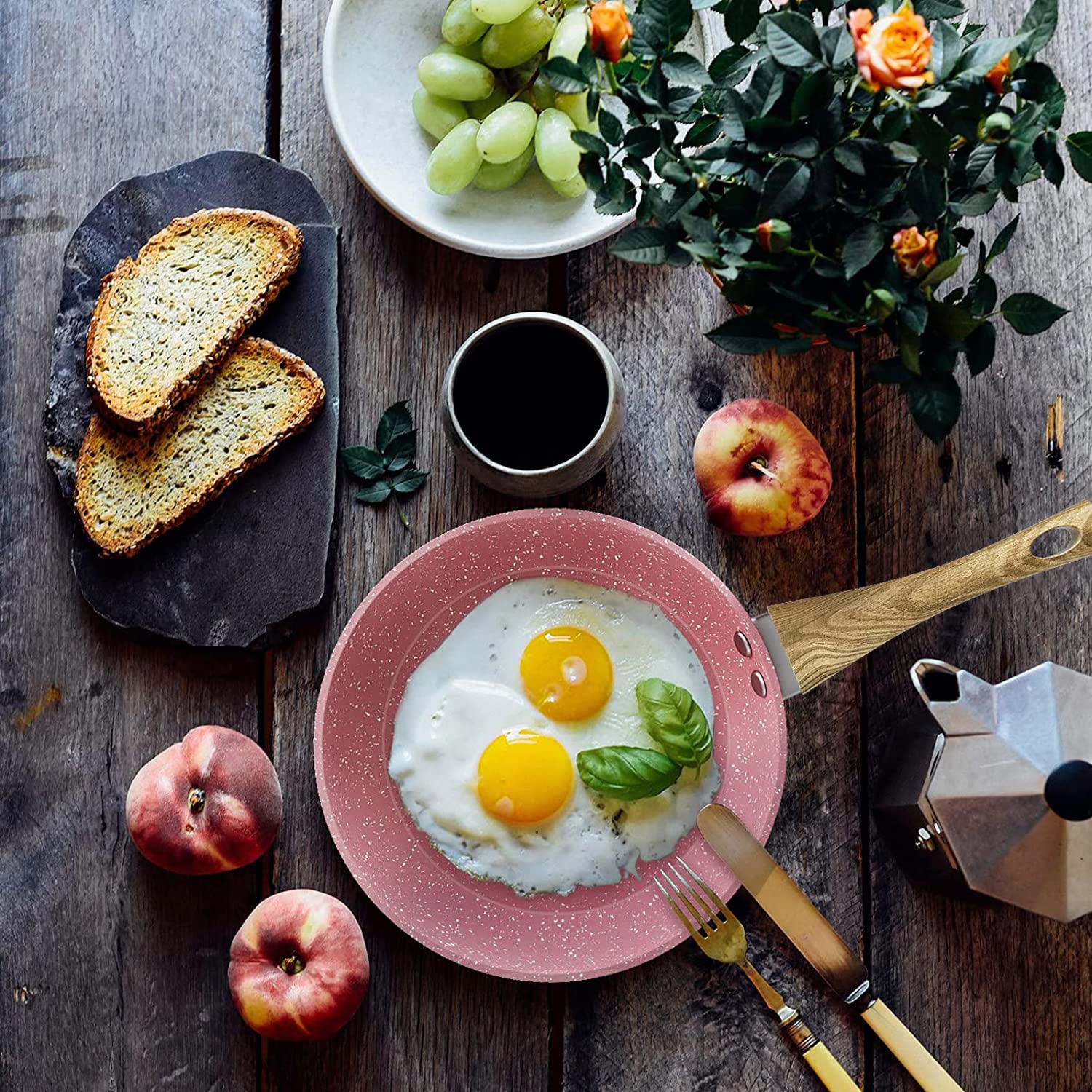 8-Inch Pink Nonstick Egg Pan, PFOA-Free Stone Cookware Skillet, Induction Compatible