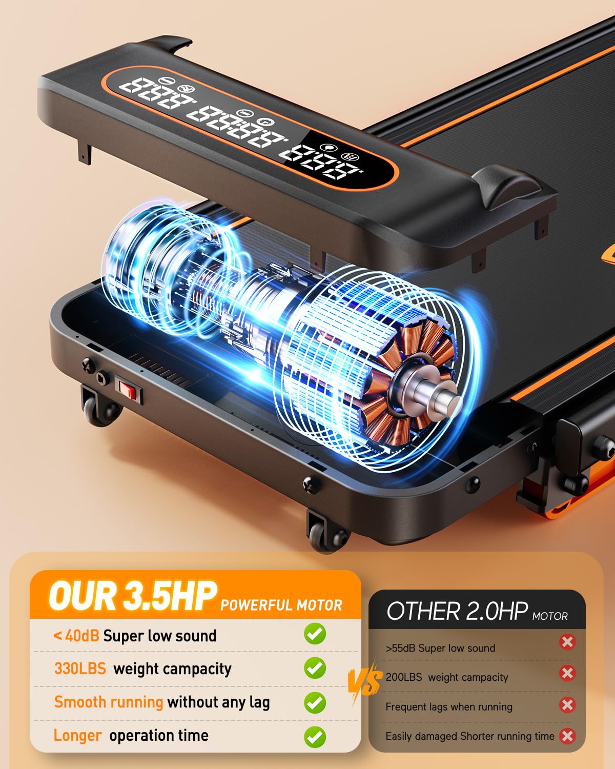 • 【3.5HP Powerful Yet Silent Treadmill】Trisomy folding treadmill is equipped with a powerful 3.5HP low-noise which can withstand loads up to 330 lbs. The portable walking treadmill enables speeds ranging from 0.6-6 mp/h for low-impact fat burning (50% more effective than flat treadmills) without annoying noise. This space-saving treadmill suits apartment dwellers and home wroker.